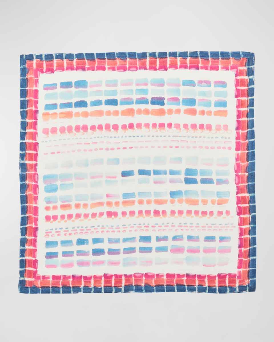 The Kaleidoscope Napkin boasts handpainted artist strokes in vibrant blues, oranges, and reds, creating an energetic feel. The linen napkin is artfully tied together by a border of thick strokes in coordinating colors. Ideal for Independence Day celebrations or casual backyard BBQs, this lively napkin is sure to amp up the excitement of your gathering, adding a burst of color and spirit to the occasion. Crafted of linen Approx. 21"Sq. Item Weight (Lbs.): 0.2 Machine wash Imported