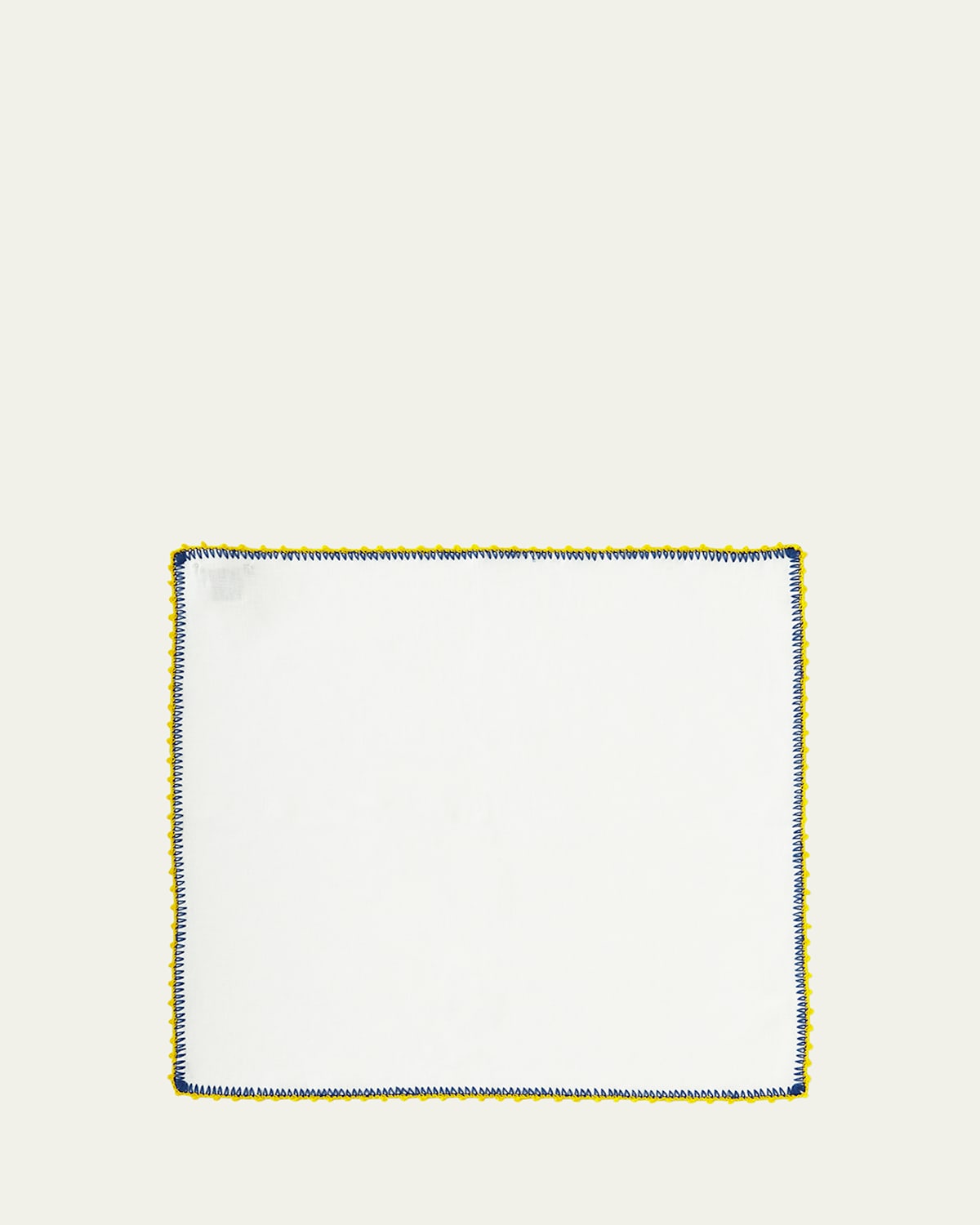 Linen napkin with contrast stitched edge. Machine wash cold with like colors. Machine dry low. Remove promptly steam. Iron while damp on reverse side. Do not bleach. Approx. 21"Sq. x 0.1"T. Imported.