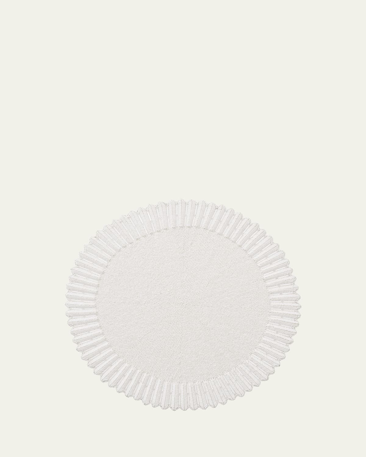 Enhance your table setting with the chic Lumina Placemat. Glass beads, gemstones, and seed beads are blended to form a threedimensional luminescent edge. This elevated classic in white exudes sophistication and combines intricate beading and detailed texture. Versatile yet refined, its chic design can be beautifully complemented by coordinating napkins and coasters for a complete look. It is also the perfect glamorous base for many different table settings. Crafted of glass, plastic, and cotton Approx. 15"Dia Sold individually Item Weight (Lbs.): 1.2 Imported