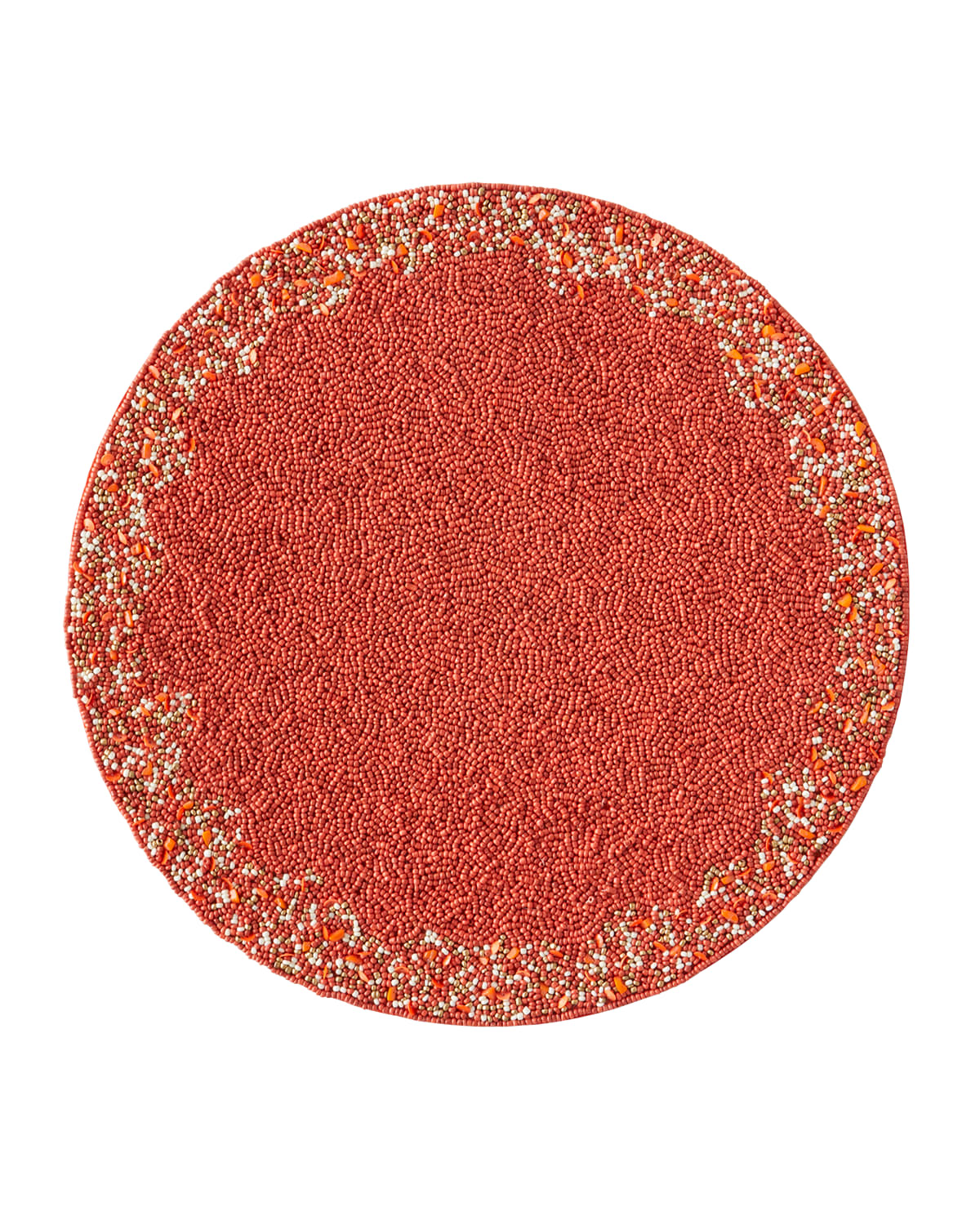 Decorative placemat made of glass, plastic, and cotton Iron on reverse as required Approx. 15"Dia. x 0.3"T Easily clean with soap and water Imported