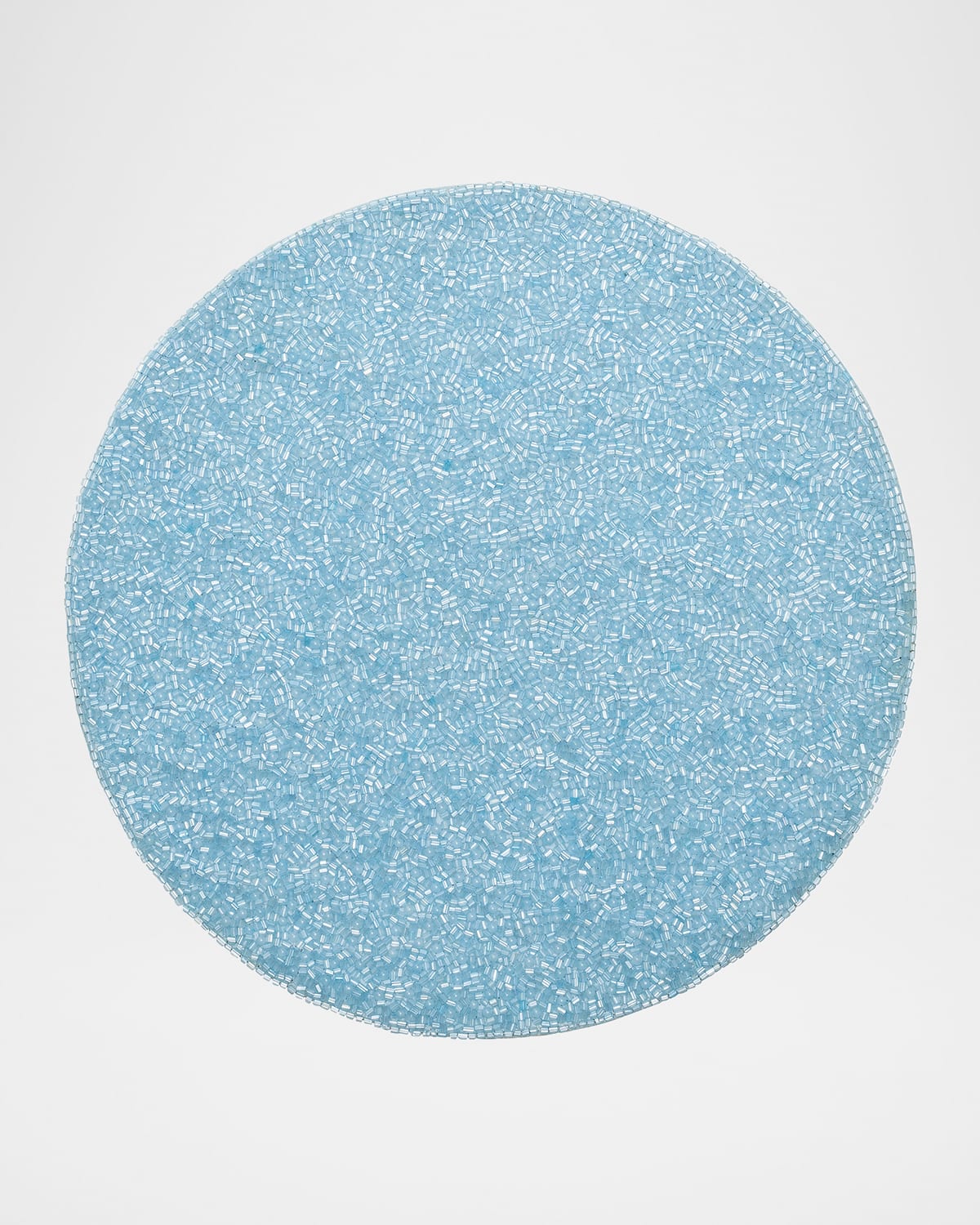 The Perennial Placemat features freeflowing translucent periwinkle beads in vermicelli patterns filled with understated sophistication. Effortlessly restyle this setting with enduring elegance, season after season. Crafted of glass beads on cotton Approx. 15"Dia. Item Weight (Lbs.): 1.0 Spot clean Imported