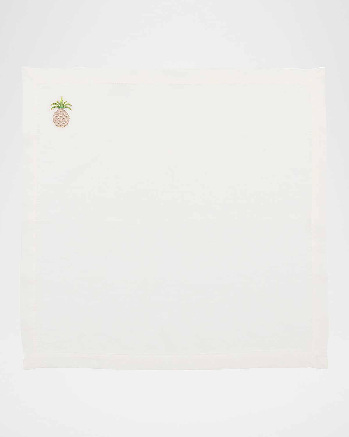The Pineapple napkin warms dining experiences with a handembroidered motif that softly glows like summer light. A symbol of hospitality and generosity, this set makes an ideal hostess gift and brings a slice of paradise to your next gathering. Made of linen Approx. 21"L x 21"W Do not dry clean. Machine wash cold with like colors. Machine dry low. Remove promptly. Steam iron while damp on reverse side. Do not bleach. Imported