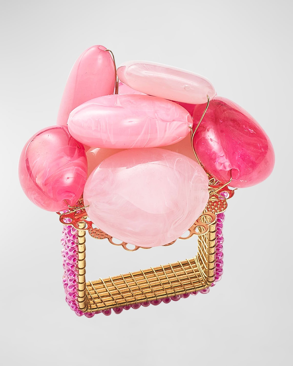 Napkin ring is made of acrylic, glass, and metal Approx. 2.5"Sq. x 3"T Wipe clean Imported