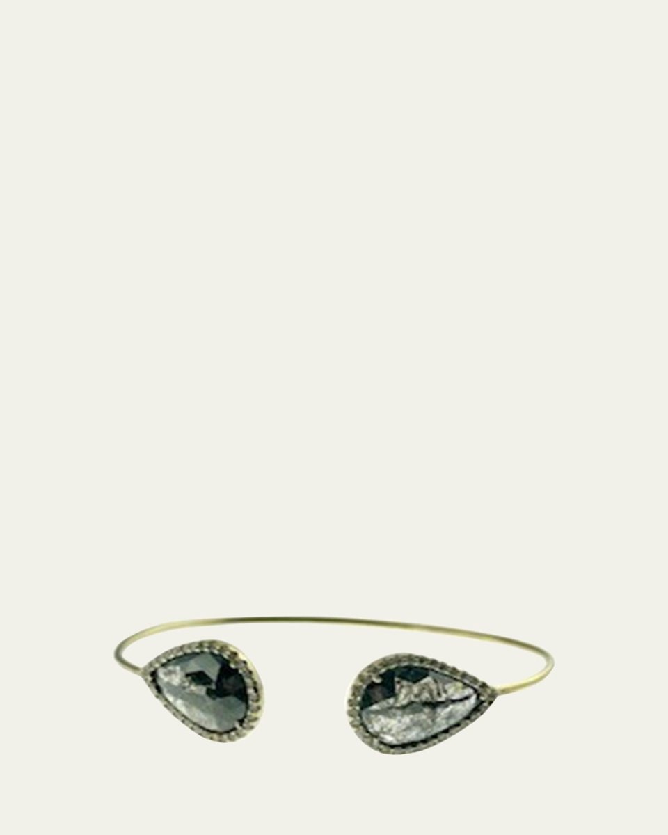18K Gold Black Diamond Slice and Pave Diamond Wire Cuff Bracelet