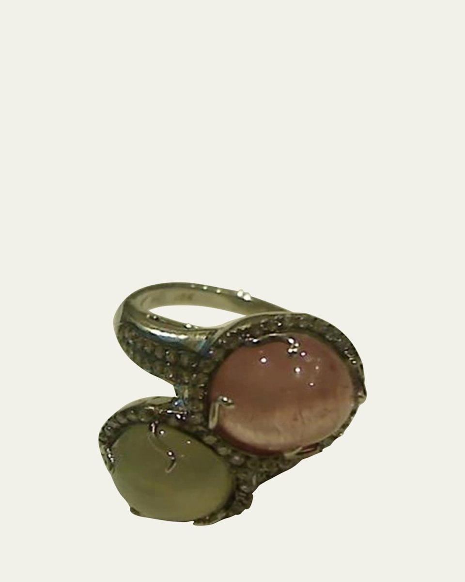 Kimberly McDonald ring Approx. 0.9"L Polished 18karat white gold with a black rhodium finish Round white diamonds 0.96 total diamond carat weight Prongset cats eye chrysoberyl and pink tourmaline stones Made in USA