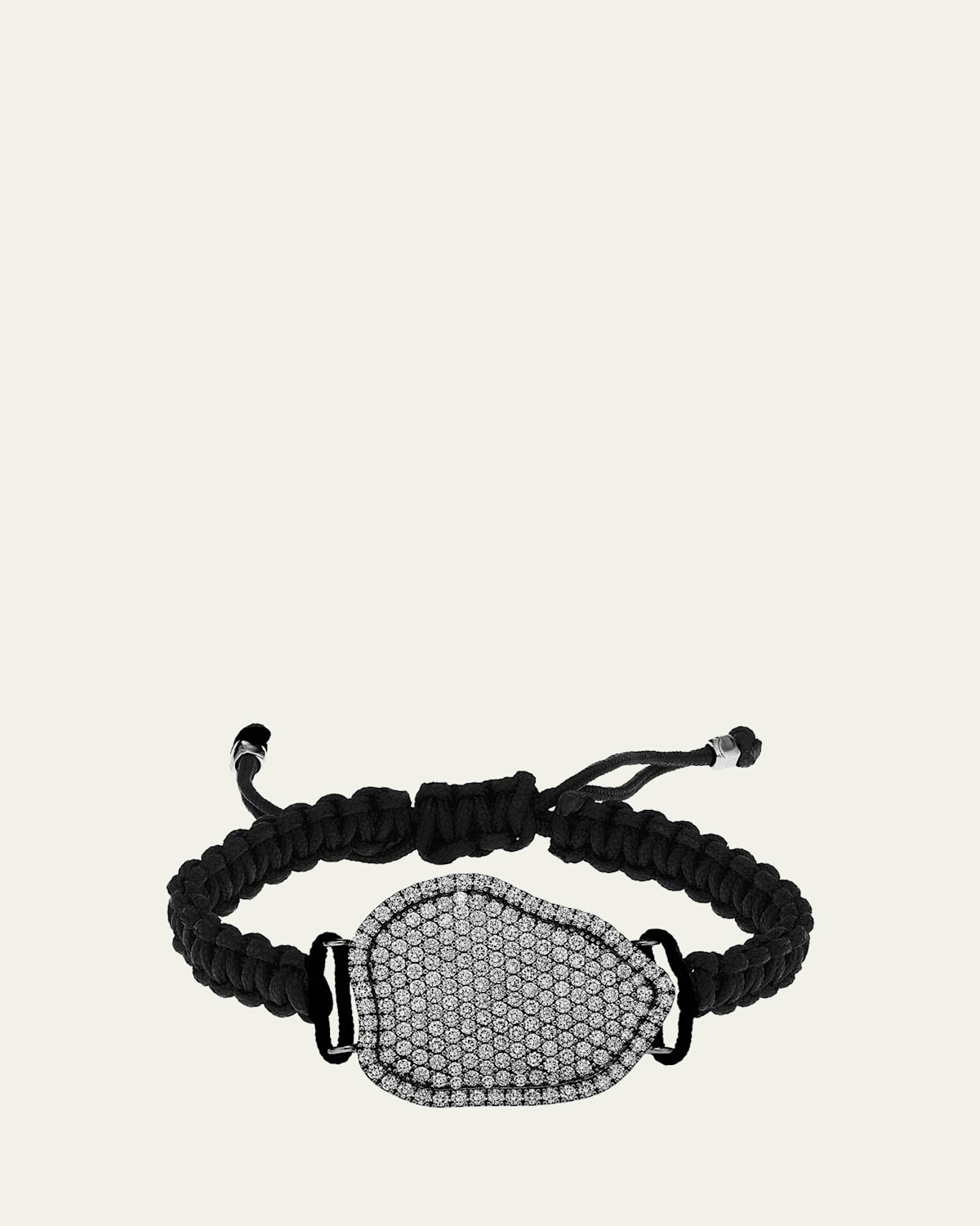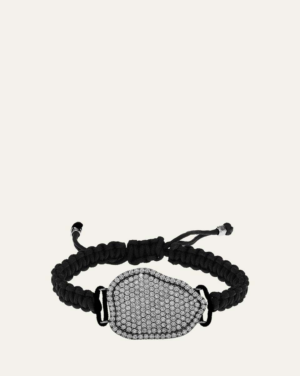 White Gold Black Rhodium Pave Diamond Geode Inspired Large Men's Black Macrame Bracelet