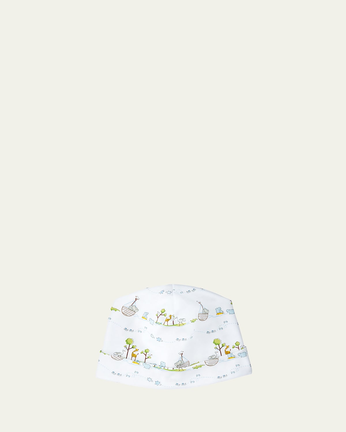 Kissy Kissy baby hat from the Noah's Ark collection. Fitted, skullcap style. Folded brim. Pima cotton. Made in Peru.
