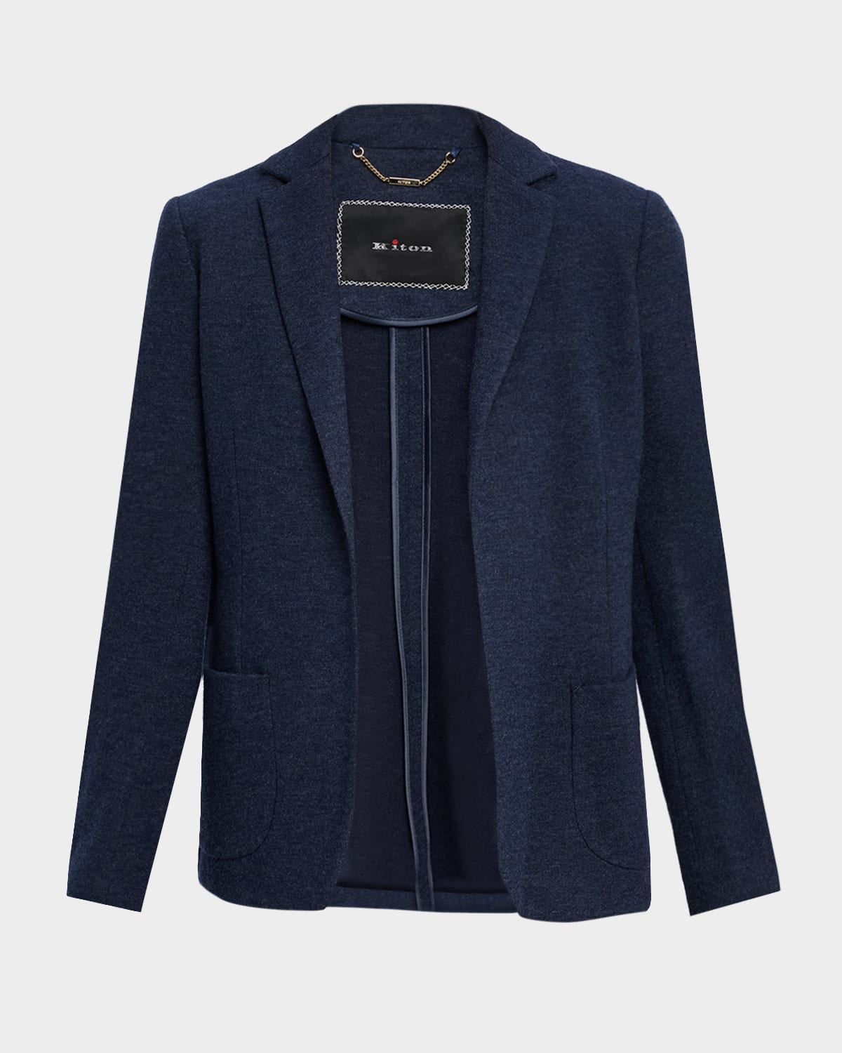 Kiton jacket knit in a cashmere blend No notch lapels; open front Long sleeves Hip patch pockets Straight fit Hip length Cashmere/nylon/polyamide Made in Italy