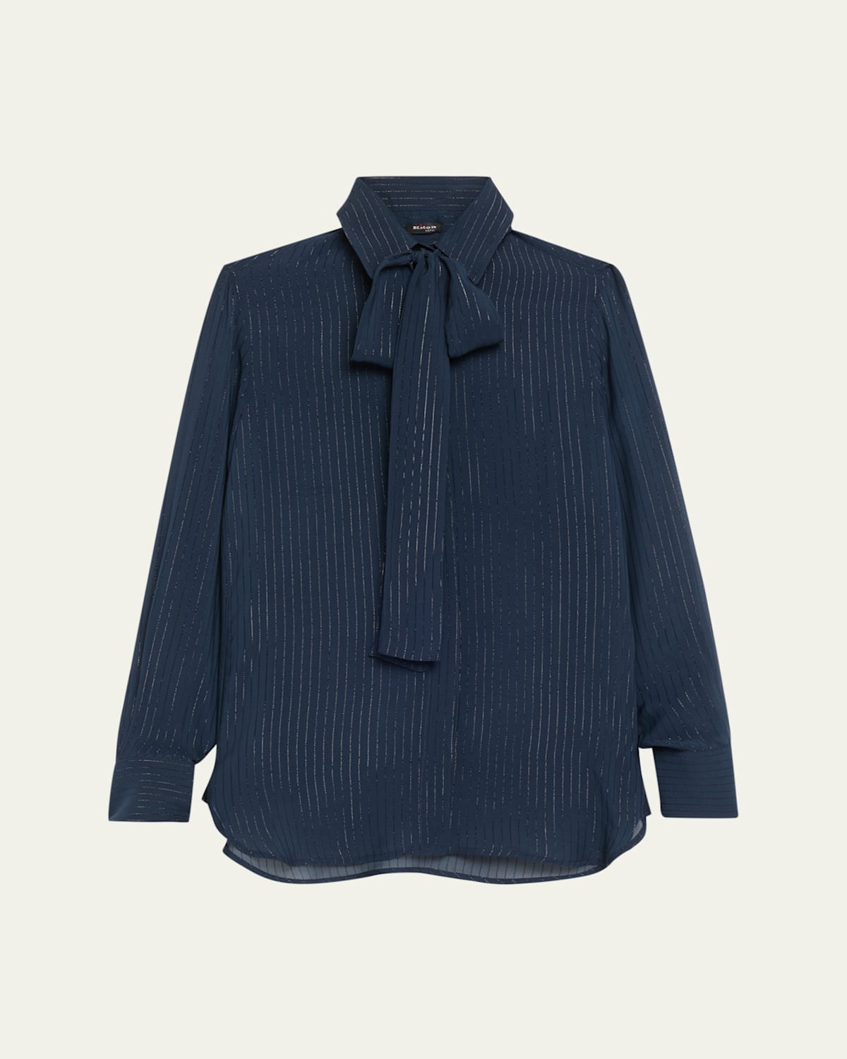 Metallic Pinstripe Silk Neck-Tie Blouse