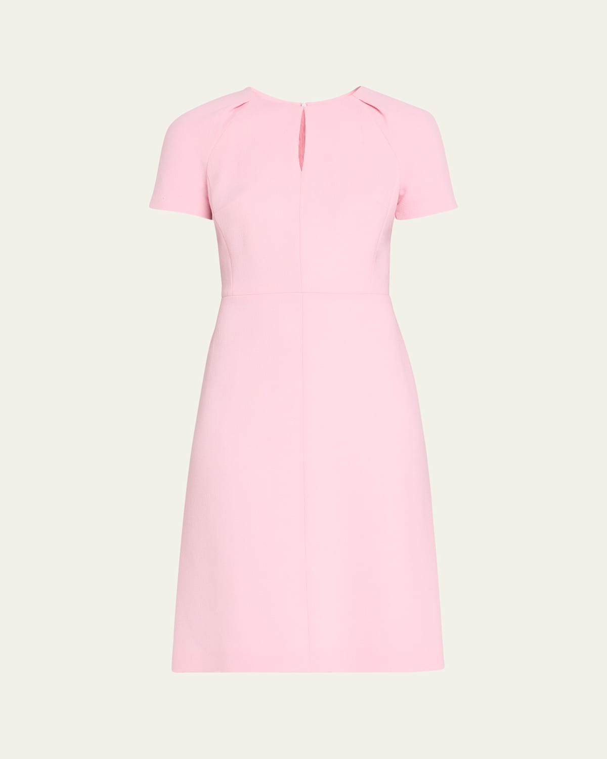 Short-Sleeve Wool Crepe Keyhole Dress, Pink