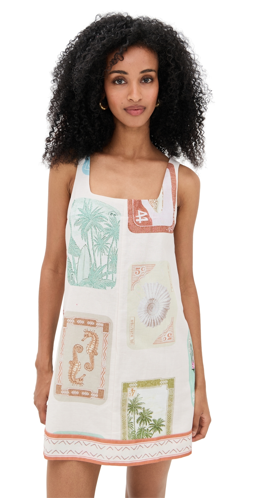 Fabric: Lightweight, non-stretch linen weave. Coastal print. Mini length. Square neckline. Sleeveless. Hook-and-eye and hidden zip at back. Shell: 55% linen/45% cotton. Lined. Lining: 100% cotton. Wash cold. Imported, China. Measurements: Measurements from size XS Length: 32in / 81.0cm, from shoulder