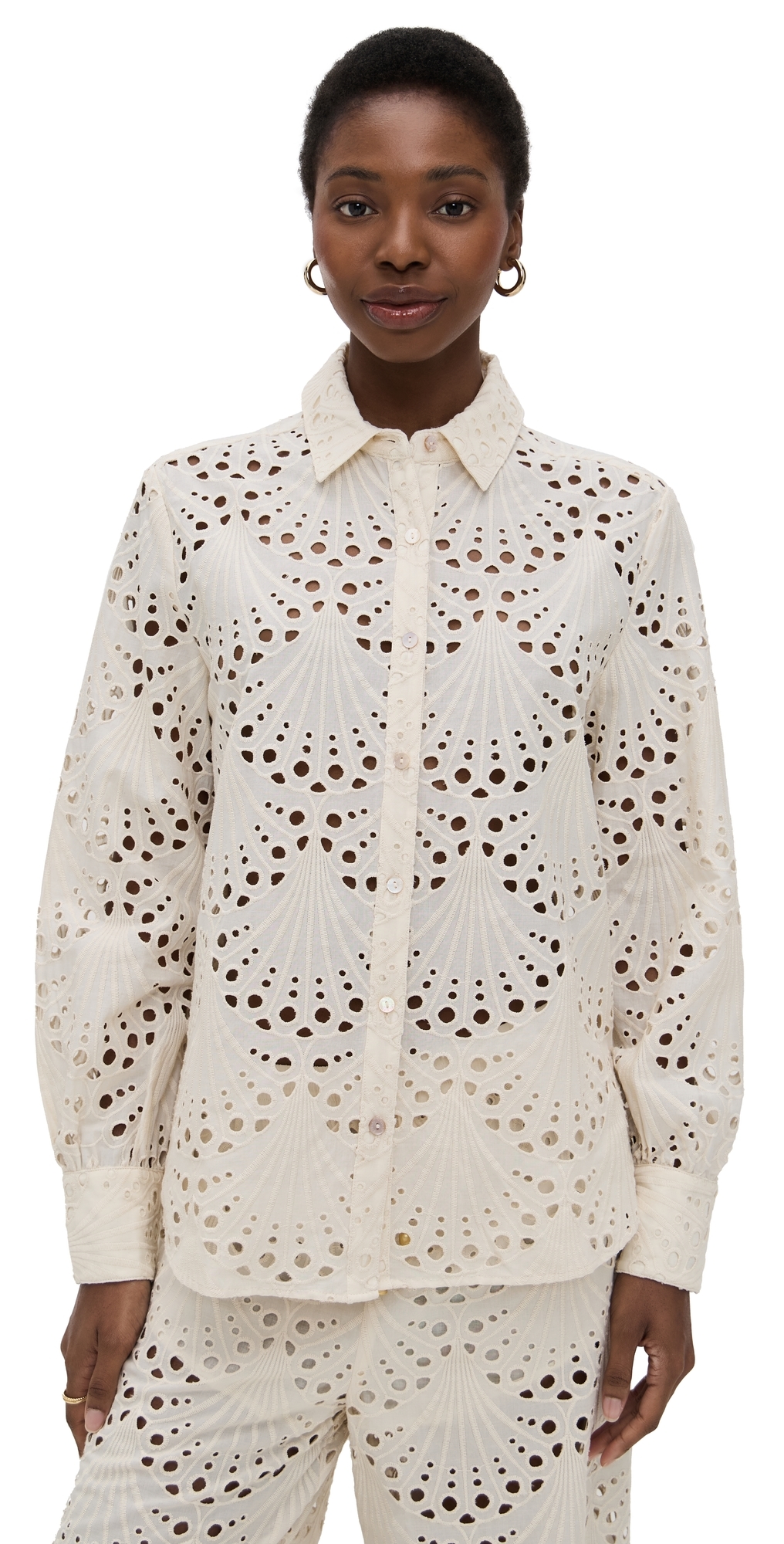 Fabric: Lightweight, non-stretch eyelet. Broderie anglaise detailing. Collared neck. Long sleeves with button cuffs. Button placket. Shell: 100% cotton. Unlined. Dry clean. Imported, China. Measurements: Measurements from size S Length: 24.5in / 62.0cm