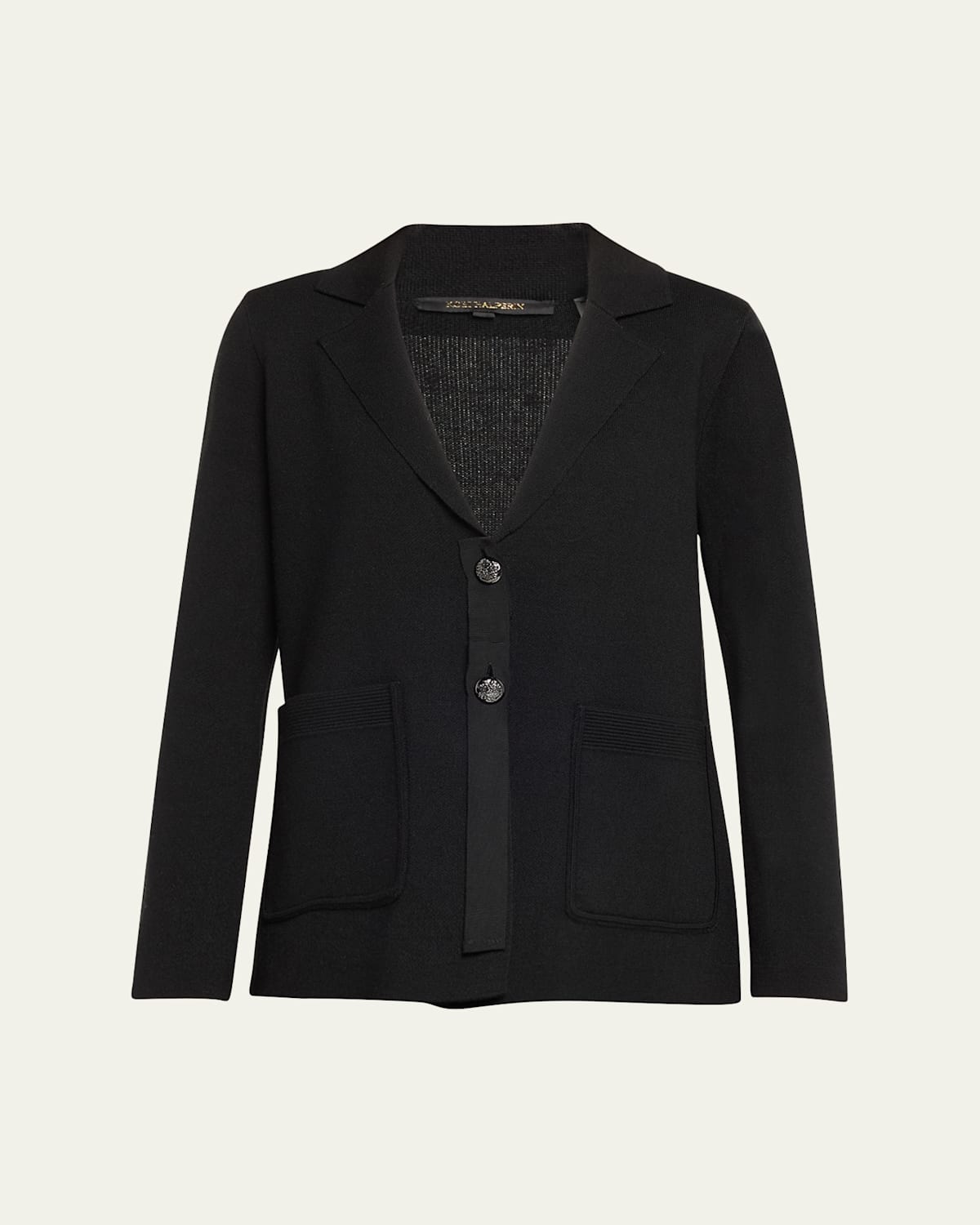 Kobi Halperin "Clove" sweater with metallic buttons Approx. 26"L from shoulders to hem V neckline with notched lapel Twobutton front Long sleeves Front patch pockets Relaxed fit Wool/acrylic Dry clean Imported