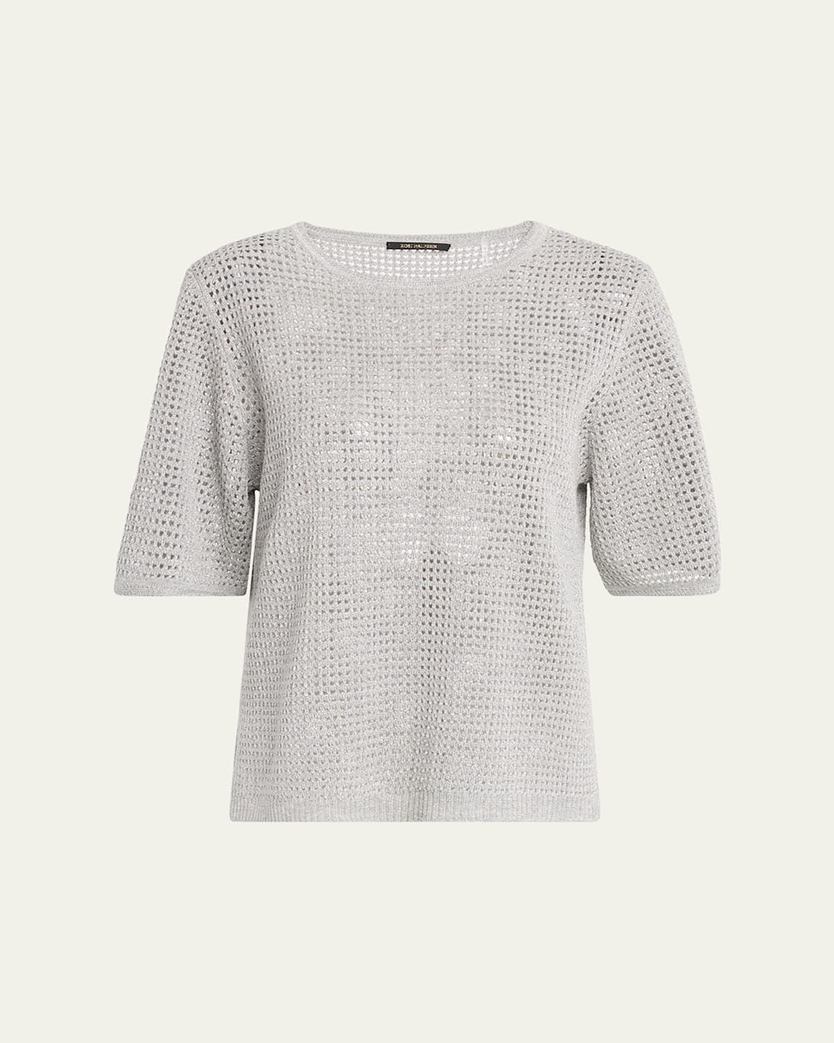 Kobi Halperin "Beck" meshknit sweater in viscose yarn Approx. 22"L from shoulders to hem Crew neckline Elbow sleeves Relaxed fit Pullover style Viscose Dry clean Imported