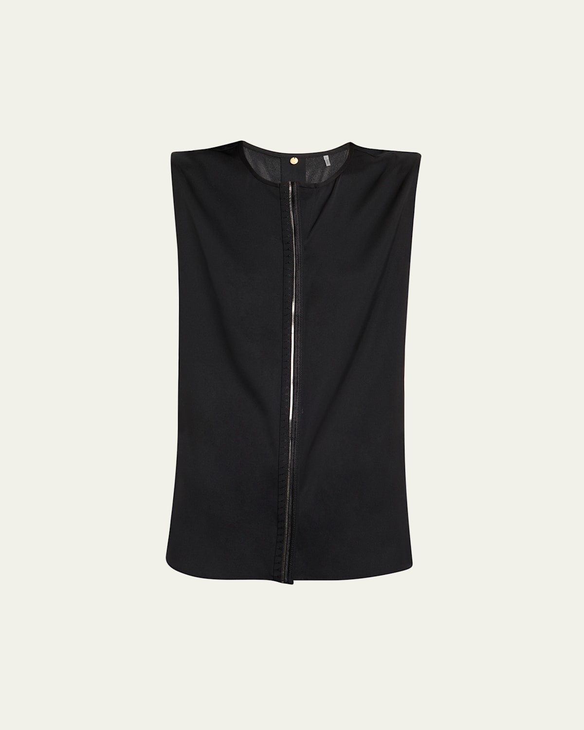Kobi Halperin "Robi" blouse with shimmer embroidery Crew neckline; concealed button front Sleeveless Back inverted pleat Relaxed fit Silk/elastane Dry clean Made in Portugal