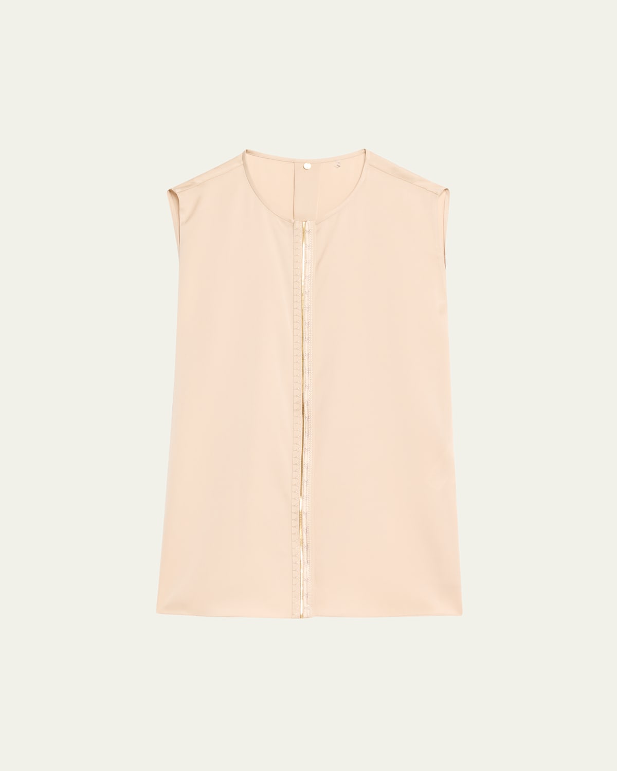 Kobi Halperin "Robi" blouse with shimmer embroidery Crew neckline; concealed button front Sleeveless Back inverted pleat Relaxed fit Silk/elastane Dry clean Made in Portugal