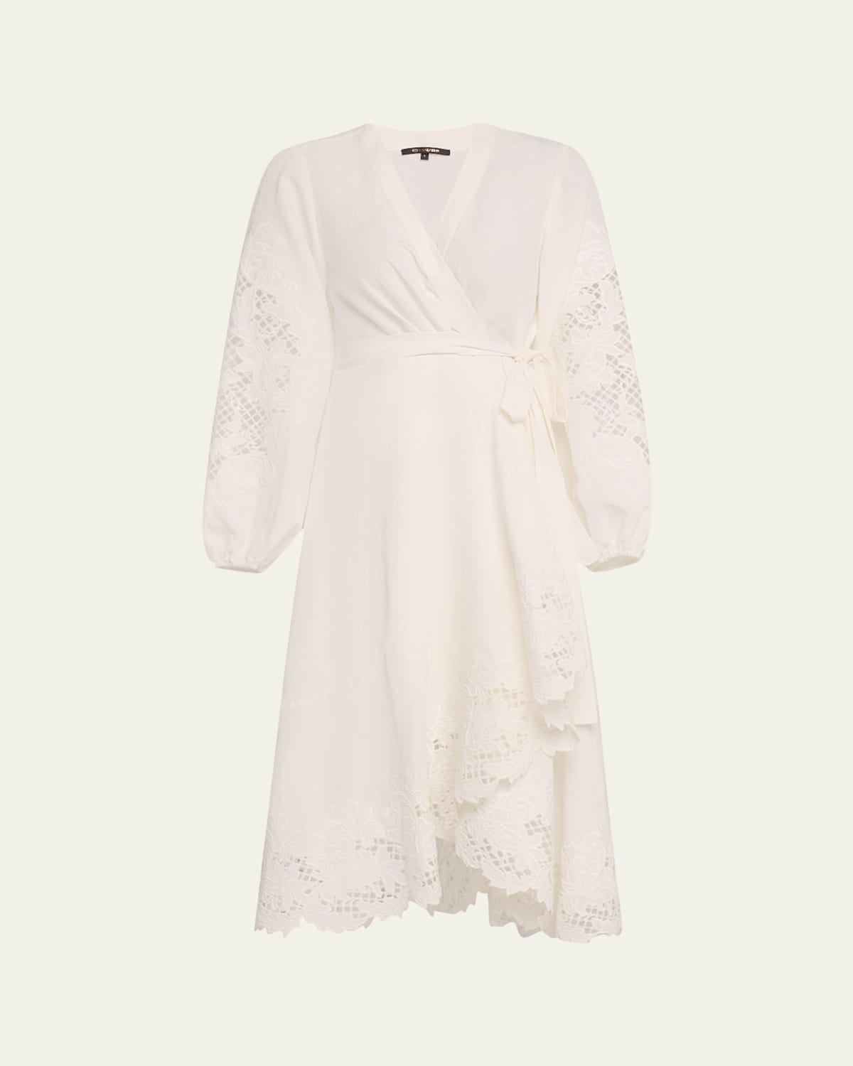 Sigal Embroidered Lace-Inset Midi Wrap Dress