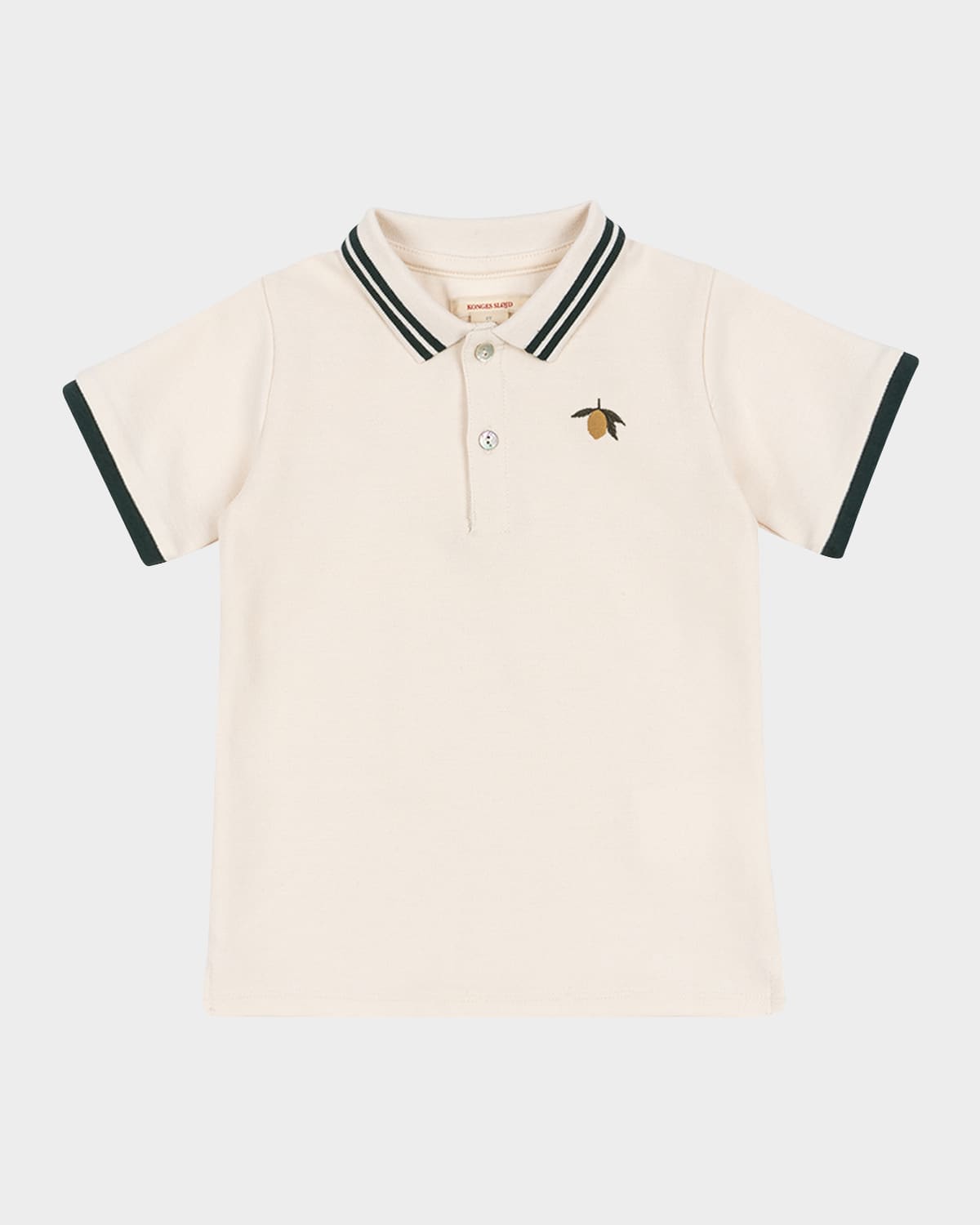 Konges Slojd "Florian" polo shirt with embroidered lemon at the chest Polo collar Short sleeves Button placket Straight hem Organic cotton Imported