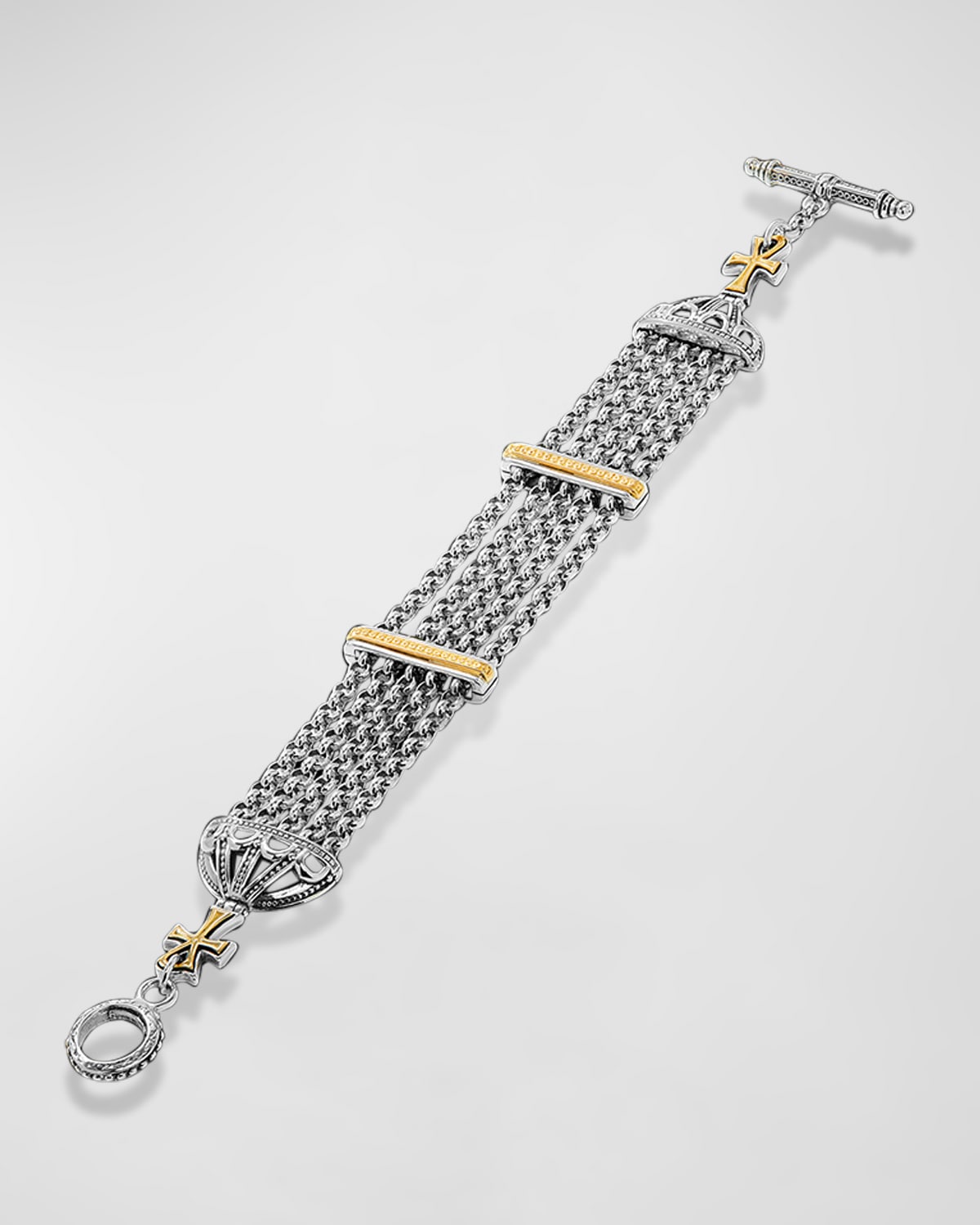 Dome Sterling Silver and 18K Gold 5-Chain Bracelet