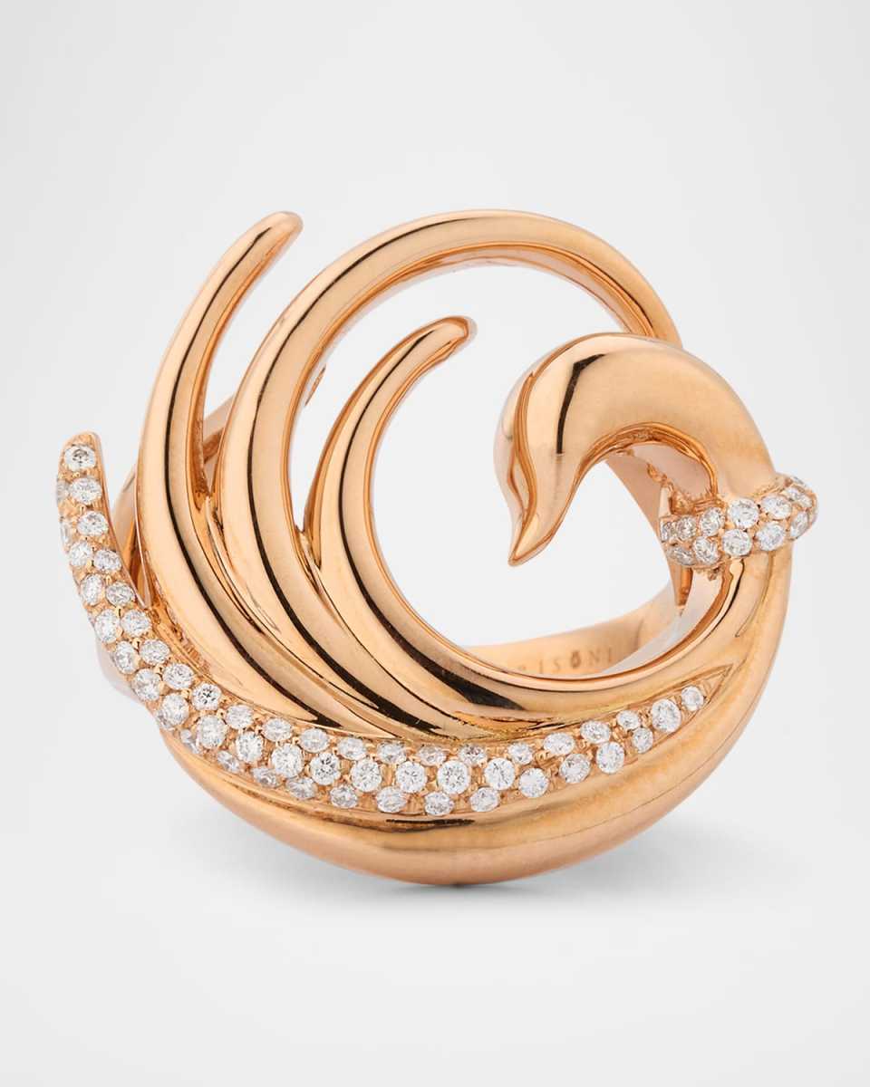 Krisonia ring resembles a swan with pavé white diamonds Approx. ring size 7 Polished 18karat rose gold 0.32 total diamond carat weight Made in Italy