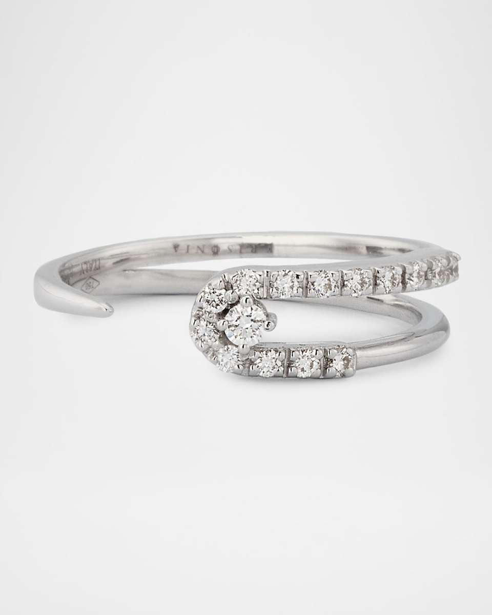 Krisonia ring from the Anima collection features a curved design with diamonds Approx. ring size 7.75 Polished 18karat white gold Total carat weight: 0.18 Made in Italy