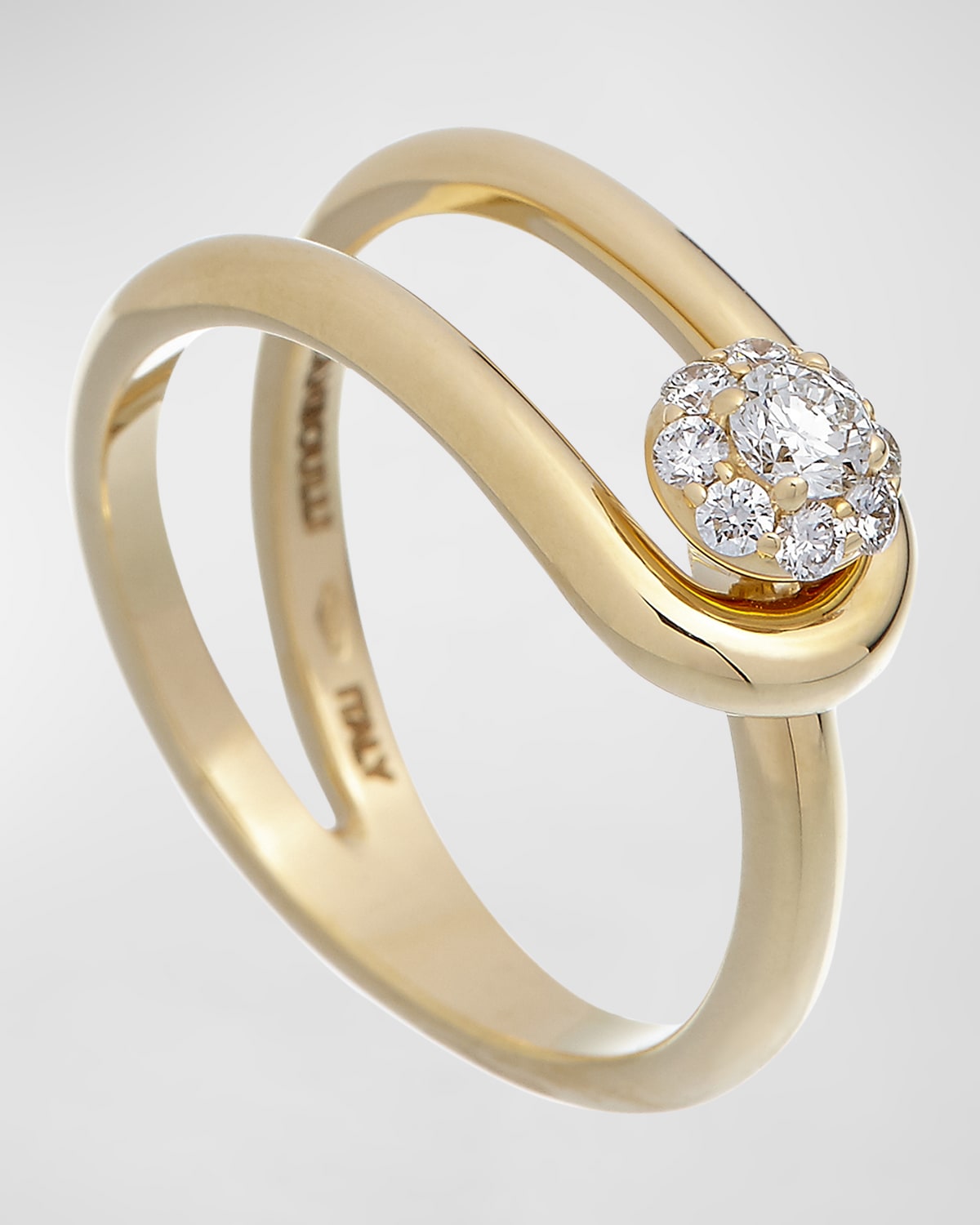 Krisonia open ring Approx. ring size 7 Polished 18karat yellow gold Round diamond with a pavé halo Diamond total carat weight: 0.23 Made in Italy
