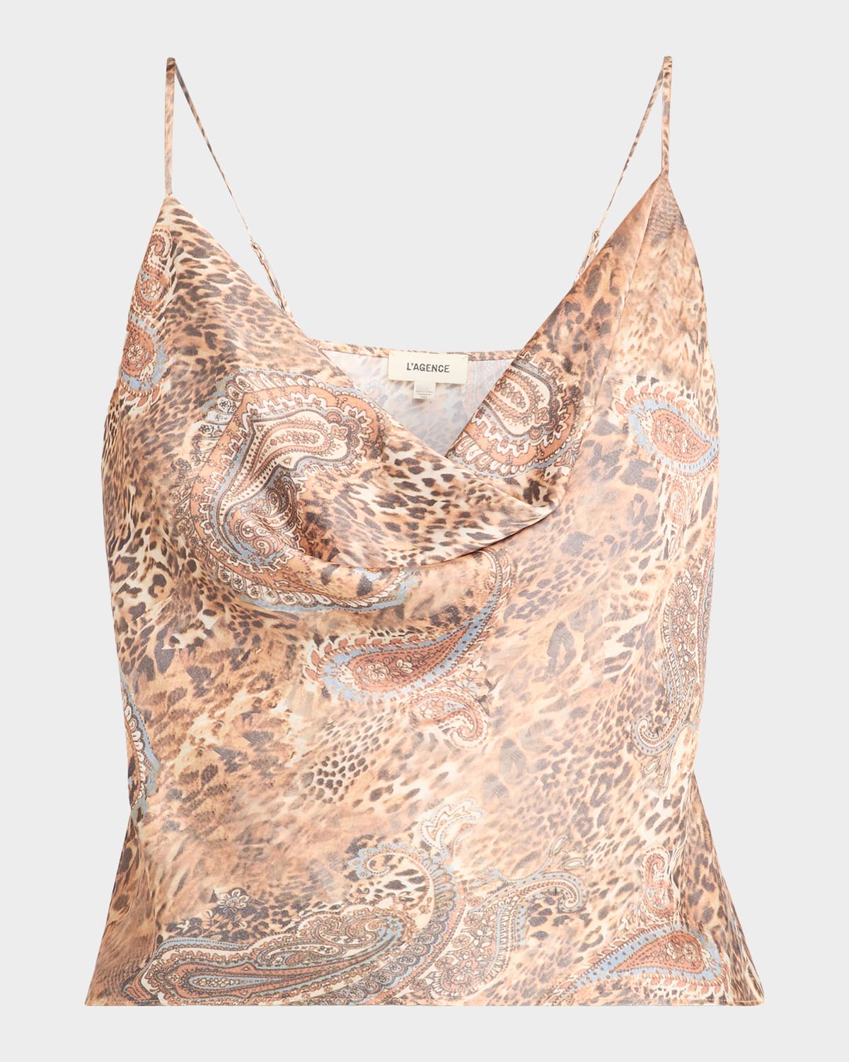 A slinky satin camisole, the "Calisa" top by L'Agence features a bold leopard print with paisley detailing Cowl neckline Sleeveless Cropped hem Relaxed fit Slipover style Polyester Imported