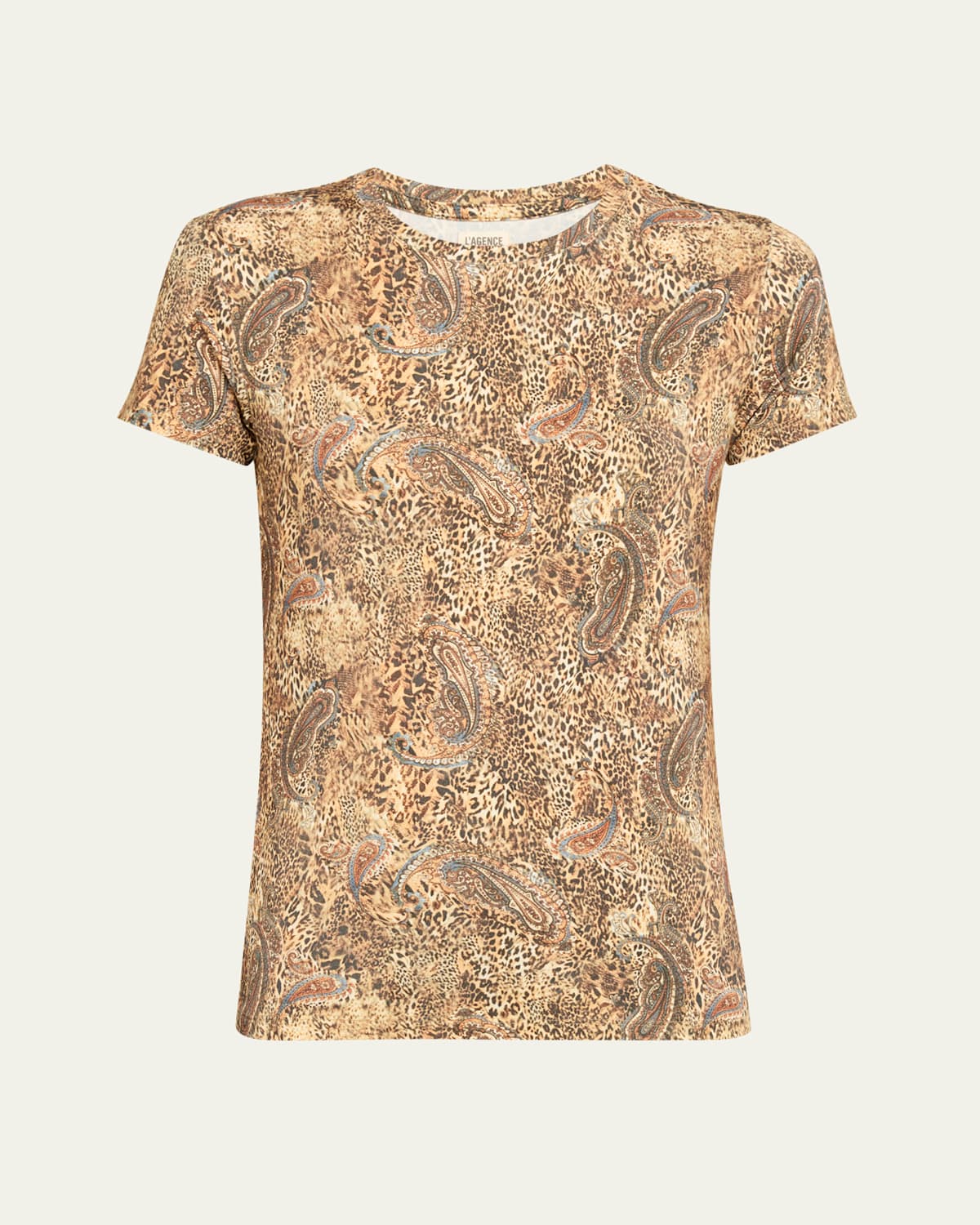 L'Agence "Ressi" classic tee featuring a Valencia Leopard motif Crew neckline Short sleeves Fitted silhouette Hem sits at the hip Pullover style Promodal® rayon/Lycra xfit® spandex Made in USA