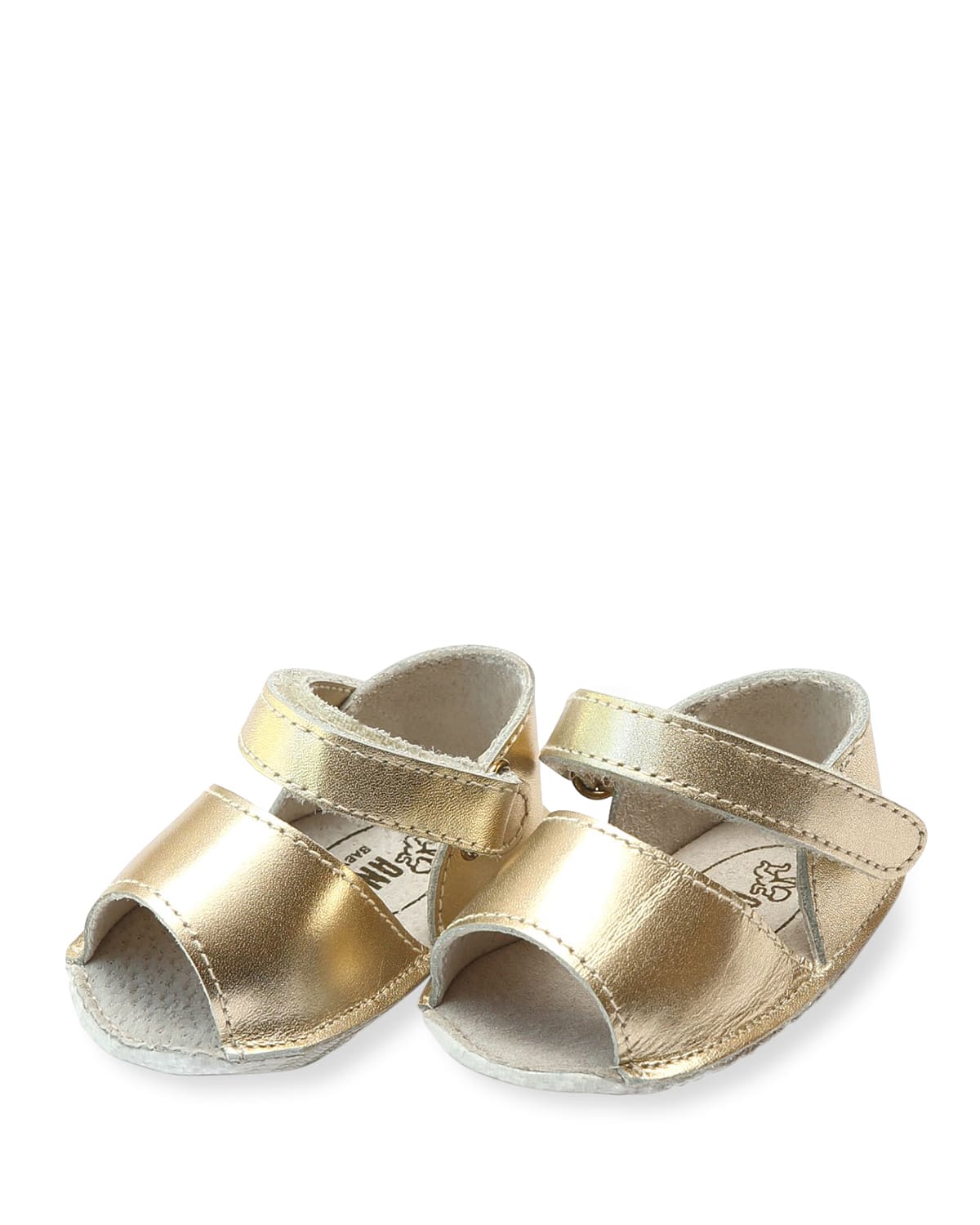L'Amour Shoes "Carisa" metallic leather crib sandals. Tapered strap across open toe. Gripstrap ankle. Leather sole. Imported.