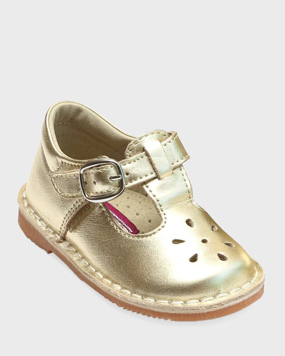 Girl's Joy Metallic Leather Cutout T-Strap Mary Jane, Baby/Toddler/Kids
