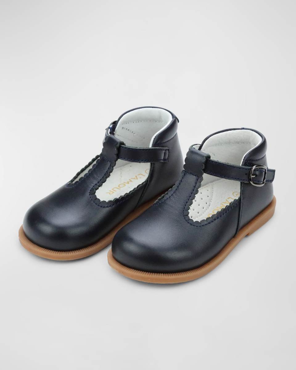 Girl's Louise Scalloped Leather T-Strap Mary Jane Flats, Baby/Toddler
