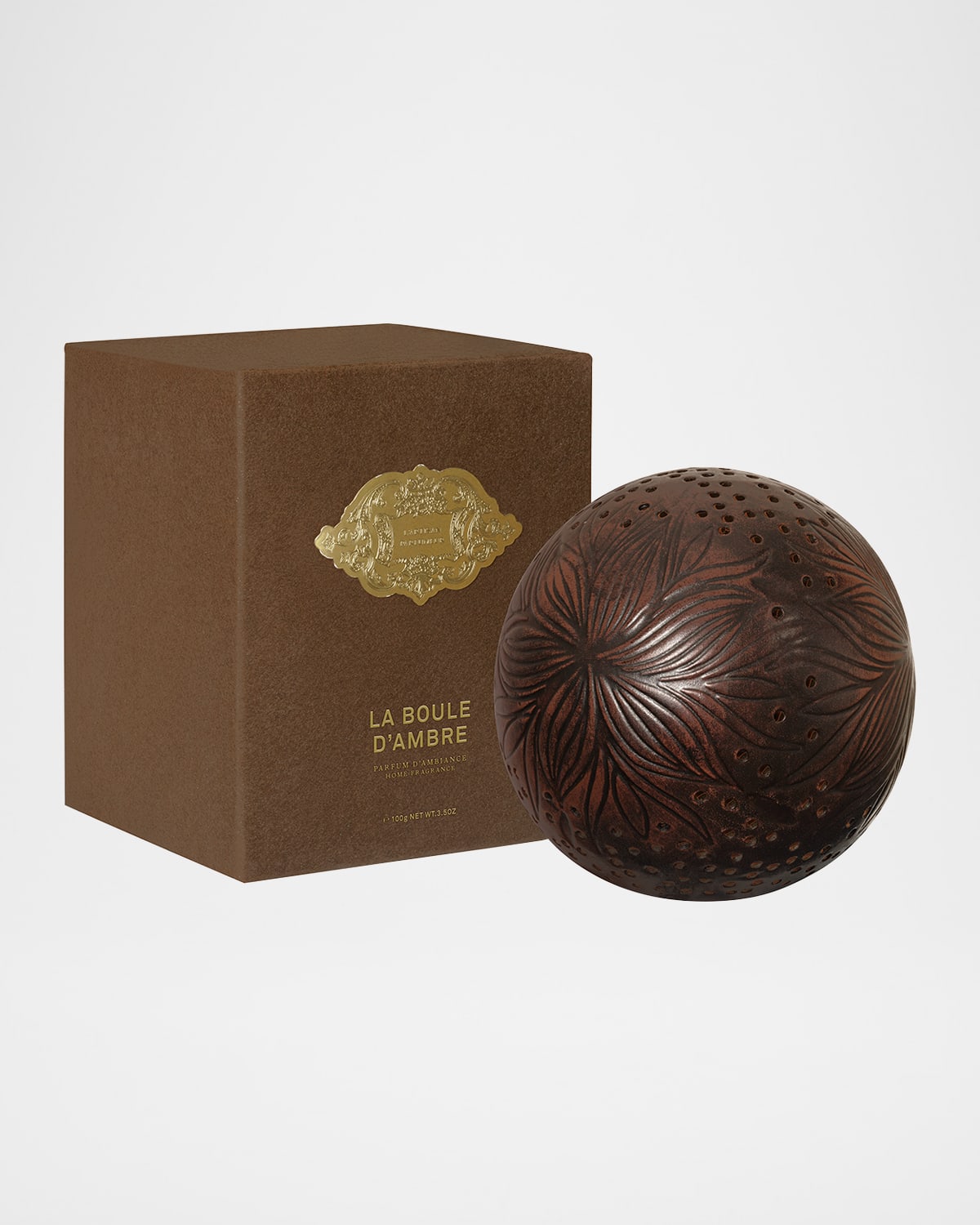 L'Artisan Parfumeur New La Boule D'ambre, 100 g What it is: An icon of the House since it was launched in 1976, the Amber Boule is back. Crafted from terracotta with intricately carved motifs, it continuously releases the scent of the amber crystals it contains, filling your living space with its soft notes of amber and vanilla. Fragrance profile: amber The fragrant diffuses from the porosity of the terracotta in a natural way, carried by air and amplified by the ambient heat in the room. Do not place in direct contact with a heat source or under direct sunlight. 100 g Contains: linalool, Coumarin, 4Methoxybenzyl alcohol, Citronellol, Linalyl acetate. Contains: Geraniol, 5Cyclopentadecen1one, 3methyl, Pin2(3)ene, (+)Isomenthone, dlimonene, Geranyl acetate. *Please Note: This ingredient list is subject to change. Please refer to the product packaging for the most uptodate ingredient