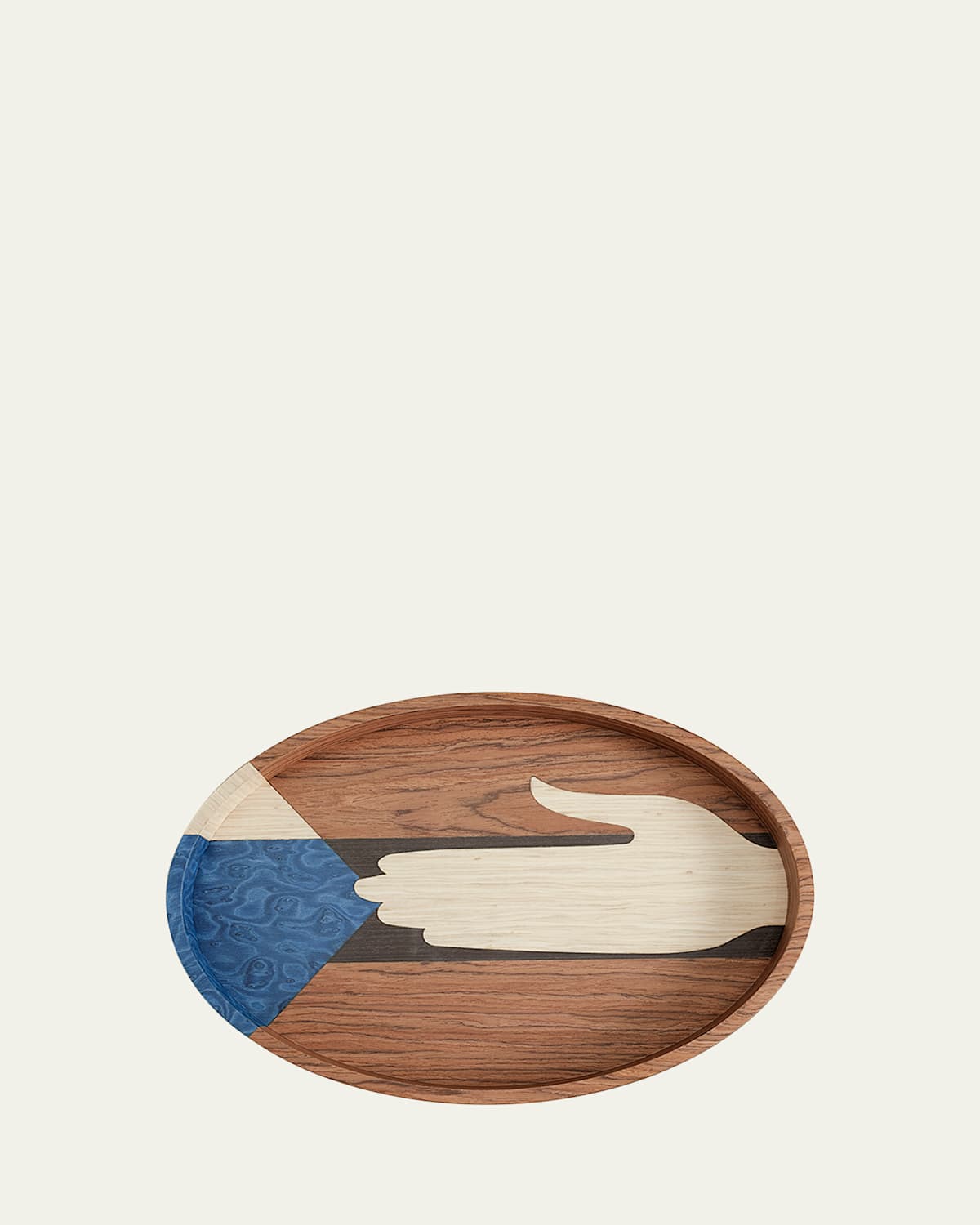 The Edgar Tray is a modernist take on the hand symbol. Handcrafted in our Portuguese Atelier with Inlaid exotic wood oaks using marquetry techniques, the Edgar Collection is suitable to adorn any room. Handcrafted of inlay oak wood (marquetry) Approx. 12.5"L x 9"W x 1.5"T Wipe clean Imported