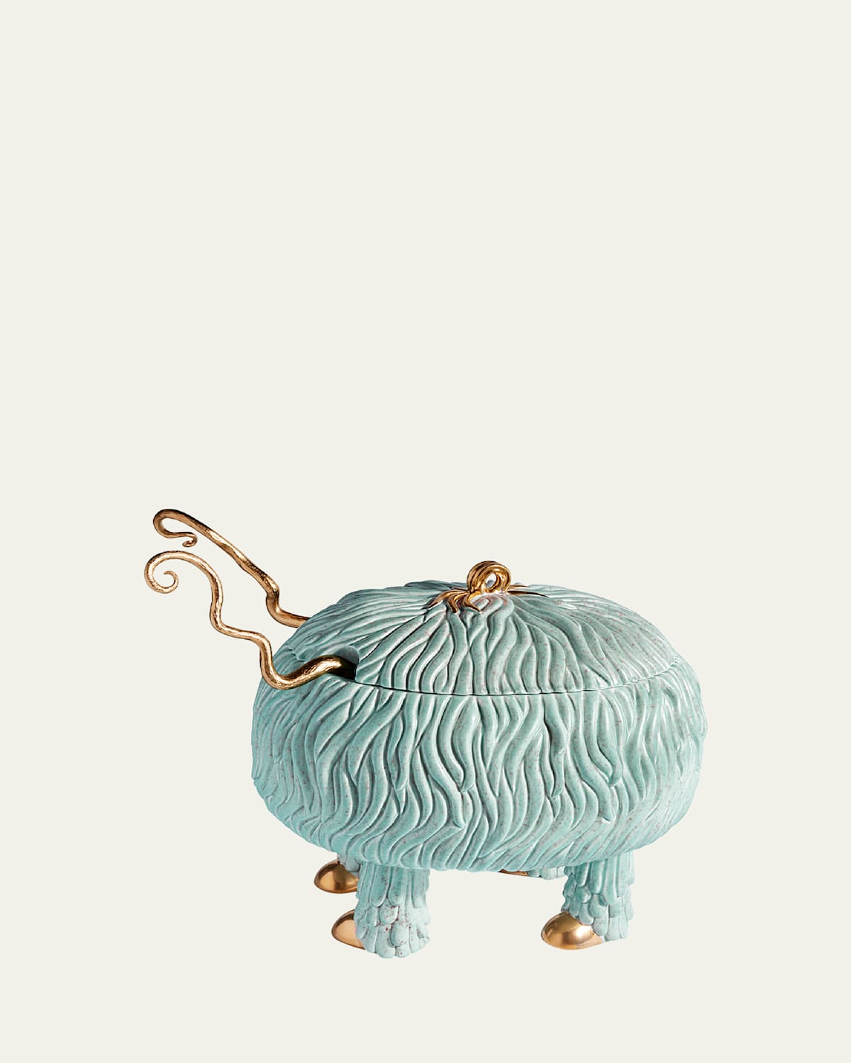 "Monster" lidded salad serving bowl is made of earthenware with 24k gold accents Approx. 13"L x 11.0"W x 11.5"T Item Weight (Lbs.): 3.0 Made in Portugal