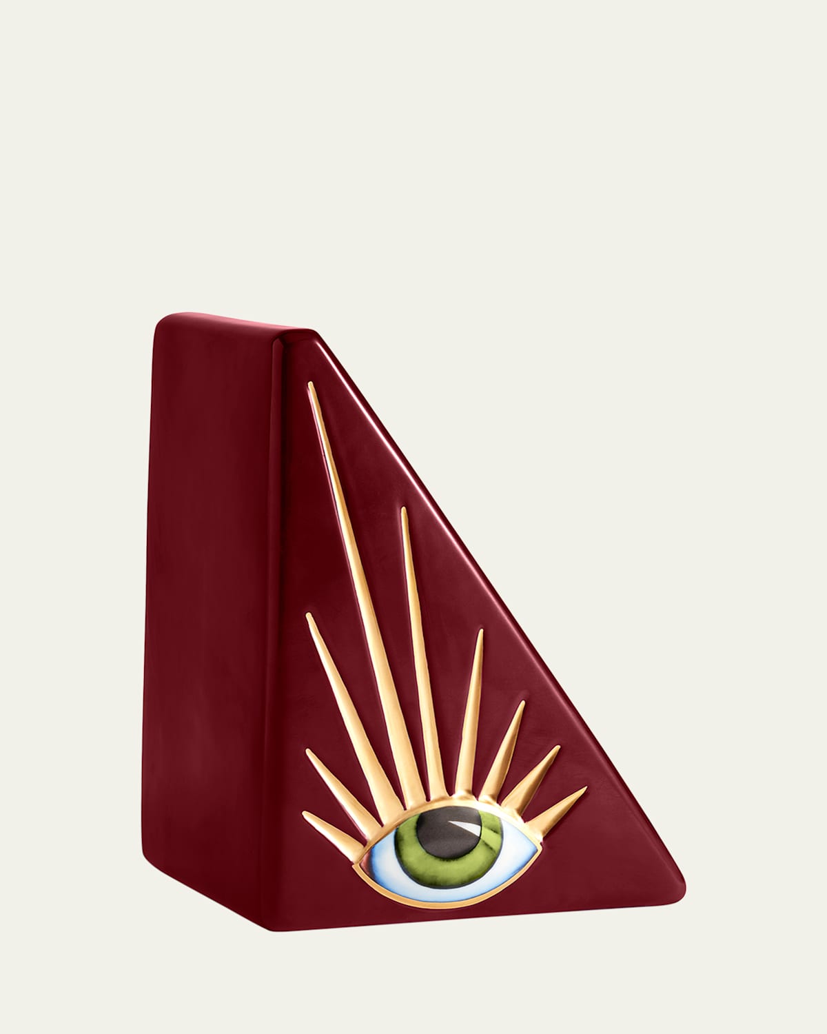 A surrealistic talisman of good luck and a traditional symbol of protection, the eye serves as a constant reminder to be mindful and to seek beauty in the everyday. 24karat goldplated accents emphasize this bookend's whimsical and luxurious design. Handcrafted of fine porcelain Comes in a luxury gift box Sold individually Approx. 6"L x 4.5"W x 2"T Item Weight (Lbs.): 6.5 Wipe clean Made in Portugal