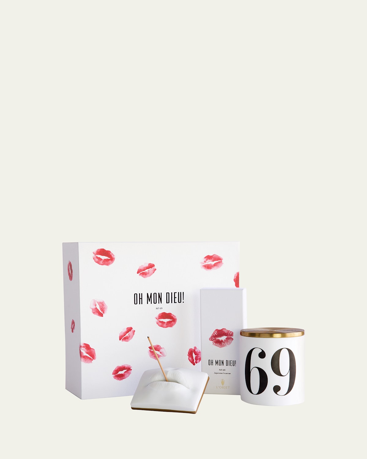 The Parfums de Voyage collection is a passport of aromatic expressions created from natural oils and essences, blended, and poured by hand into bisque porcelain vessels glow as the candle burns down. Bespoke home fragrance takes us on a perfumed Odyssey, inviting us to explore the world. A graphic number references a place, a year, an atmosphere as a muse for olfactory creations: the scent of a Russian tea, the spices of an oriental bazaar, the memory of a woman in Paris in 1969...Each scent captures an unexpected moment of a journey and recalls the magic of losing oneself in adventure. "Paris, 1969. It was a time of artistic and sexual revolution. The air was bohemian raw, wild, playful, and undeniably sexy-in a way the world had never experienced before. Glamour was ageless and effortless, and women were as bold as their lipstick color, flaunting their freedom, style, and powers of seduction. Oh Mon Dieu! " A sensual pairing of roses, lipstick and Cognac Olfactive Family: Floral - Oriental with Cosmetic notes Fragrance Notes Top: Cognac, Coriander seed, Pimento Heart: Red Currants, Plum, Rose absolute, Jasmine, Caramel Base: Oakmoss, Benzoin, Leather, Civet, Musk Box: 9.75 x 9.75 x 4.5" 25 x 25 x