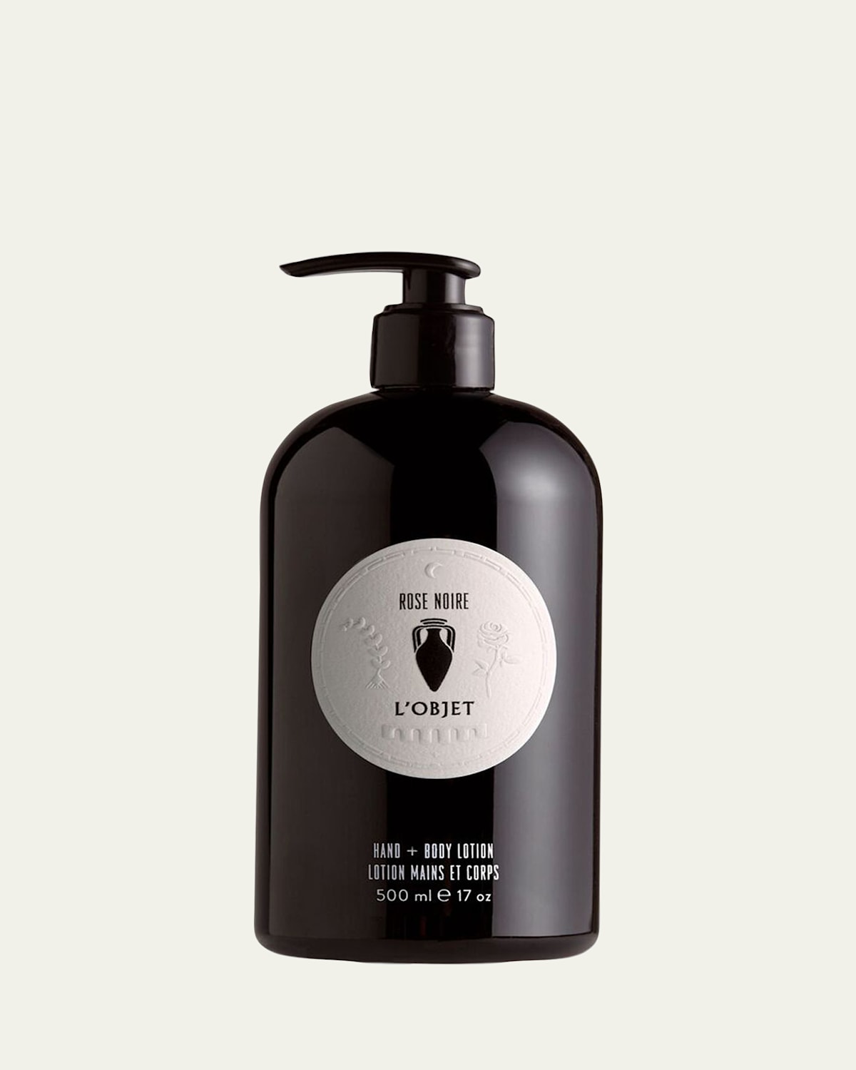 Soothes and protects with a silky blend of hydrating, moisturizing elements. Infused with aromatic botanicals, sweet almond oil, and specially formulated for fast absorption. The L'Objet Apothecary collection transforms ordinary rituals into extraordinary escapes. A modern take on ageold Mediterranean traditions, Europe's beauty artisans and L'Objet house perfumer Yann Vasnier use natural ingredients to formulate rich fragrances and bathing experiences to invigorate the body and mind. ROSE NOIRE: The essence of a rose garden at dusk. Elements combine in a velvet blend of exotic florals contrast by earthy spices and Ceylon tea. Olfactive family: Floral spicy A delicate contrast of Ceylon tea and exotic roses. This sumptuous floral blend is shaded with hints of white pepper, pimento berry and moss. SIZE: 17oz