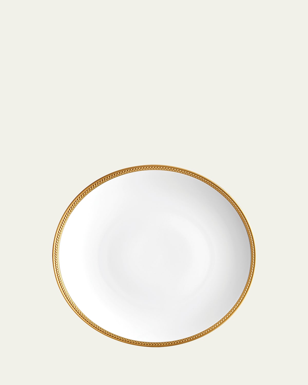 Soie Tressée, French for "Silk Braid," is a modern expression of a timeless classic. The braid details in this collection pair beautifully with the pieces in the Han Collection (sold separately). Crafted of porcelain with a 24karat goldplated rim Approx. 12.5"Dia. Item Weight (Lbs.): 1.2 Dishwasher safe Do not microwave Made in Portugal