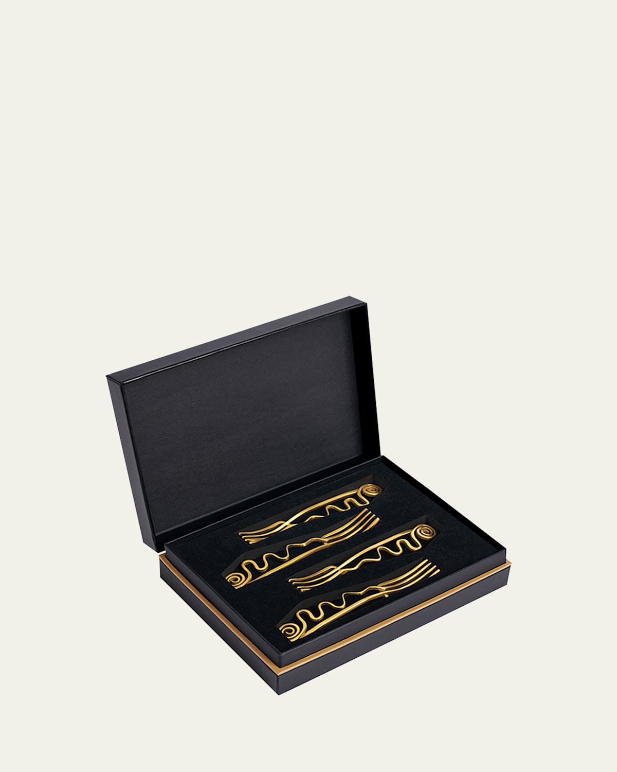 Designed with Portuguese jeweler and concept artist, Sebastião Lobo, the Spirale Cocktail Forks bring a touch of surreal elegance to your table. Finished with L'objet's signature 24k gold plating, the twisted, spiral handles are inspired by the work of Alexander Calder. Both sculptural and functional, these spreaders transform any cocktail or dessert into an exquisite experience. Handcrafted of 24karat goldplated metal Approx. 5"L Item Weight (Lbs.): 0.2 Set of 4 Imported