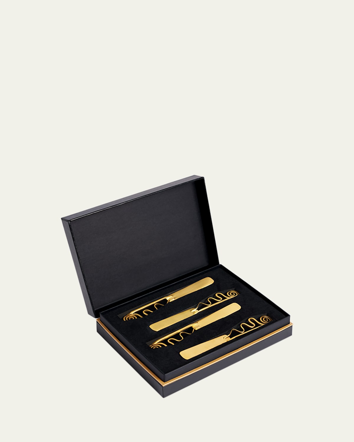 Designed with Portuguese jeweler and concept artist, Sebastião Lobo, the Spirale Spreaders bring a touch of surreal elegance to your table. Finished with L'objet's signature 24k gold plating, the twisted, spiral handles are inspired by the work of Alexander Calder. Both sculptural and functional, these spreaders transform any cocktail or dessert into an exquisite experience. Handcrafted of 24karat goldplated metal Approx. 5.25"L Item Weight (Lbs.): 0.2 Set of 4 Imported