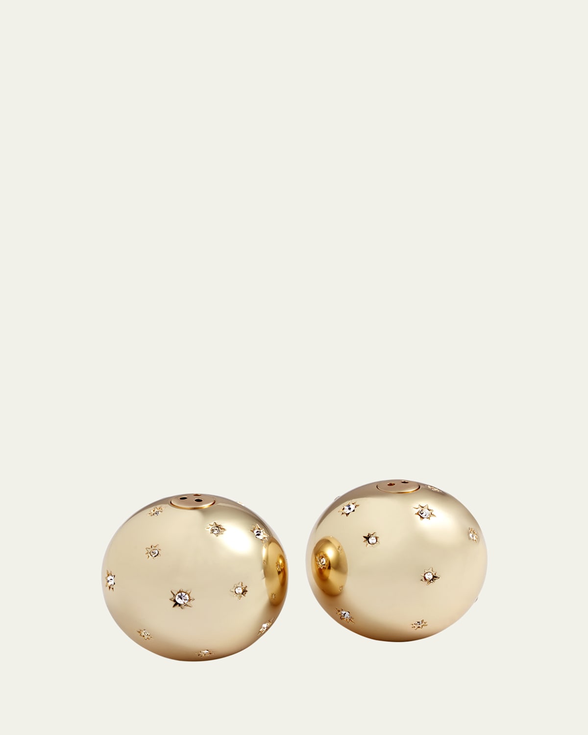 Illuminate your table with shimmering salt and pepper shakers. Masterfully handcrafted, this set features Swarovski® crystals inside each star detail. Handcrafted of 24karat goldplated metal Comes in a luxury gift box Approx. 2"Dia. x 2"T Item Weight (Lbs.): 0.7 Set of two Imported