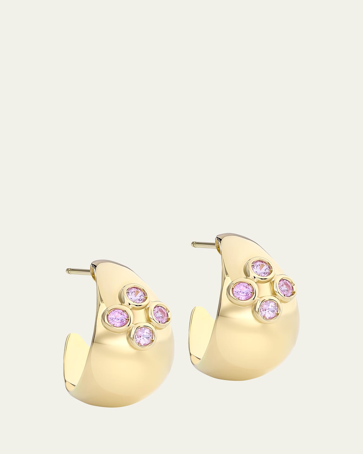 18K Yellow Gold Dome Hoop Earrings with Pink Sapphires