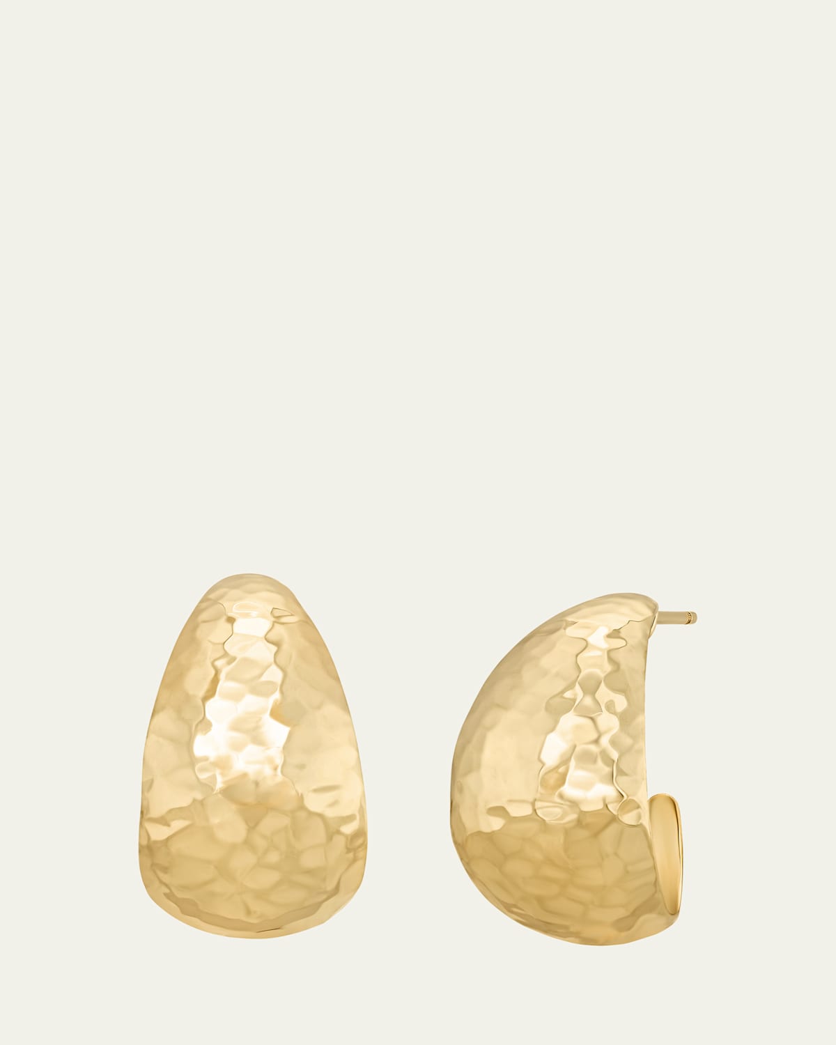 Dome Hammered 18K Yellow Gold Hoop Earrings