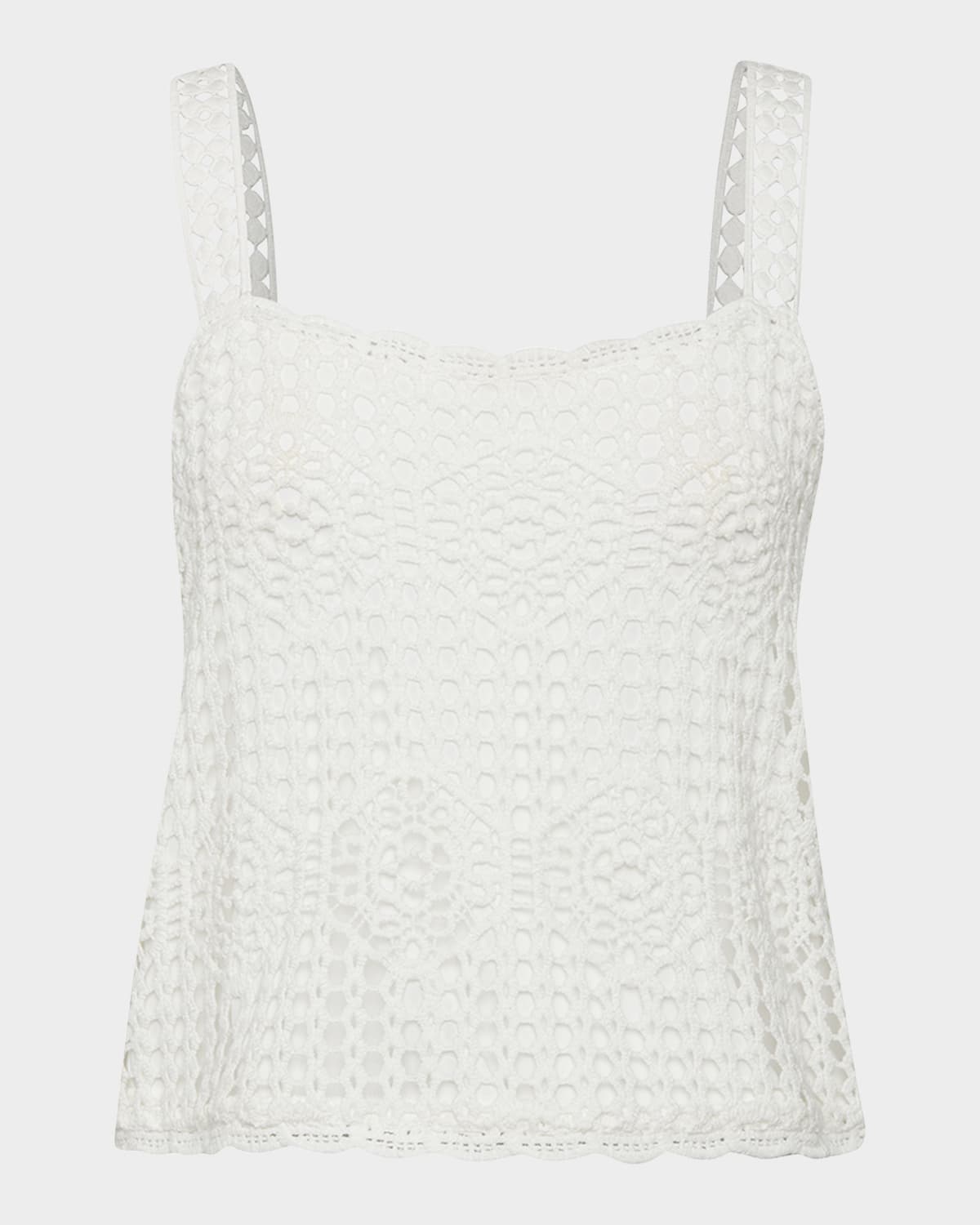 La Blanca "Waverly" crochetknit tank top Approx. 21.5"L from shoulder to hem Scoop neckline Sleeveless Hip length Relaxed fit Slipover style Cotton Lining: Polyester Hand wash Imported