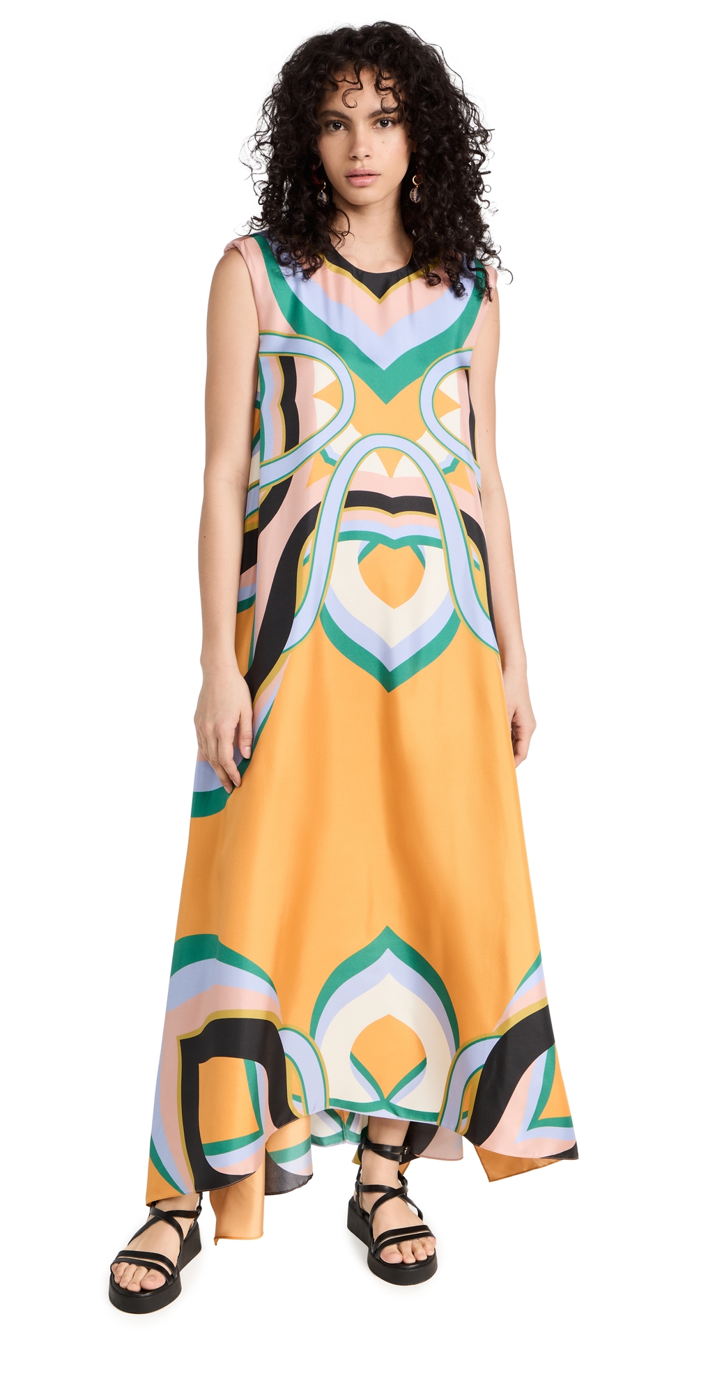 Cannot be shipped outside the USA Fabric: Lightweight, non-stretch silk twill. Shoulder pads. Geometric print. Self-tie belt at waist. Round neckline and button keyhole at back. On-seam side pockets. Shell: 100% silk. Unlined. Dry clean. Made in Italy. Measurements: Measurements from size S Length: 56in / 142.0cm, from shoulder