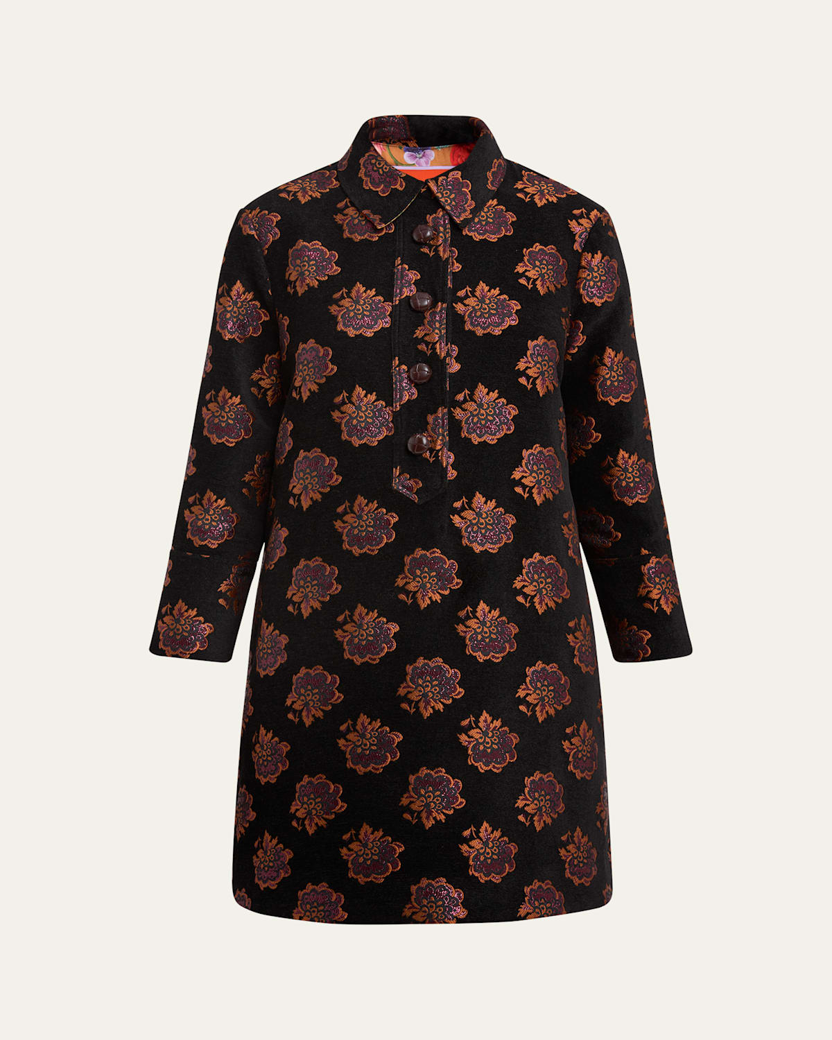 La DoubleJ "Artemis" rosette jacquard dress Point collar; button placket Fluted sleeves Short length Shift silhouette Slipover style Viscose/cotton Dry clean Made in Italy