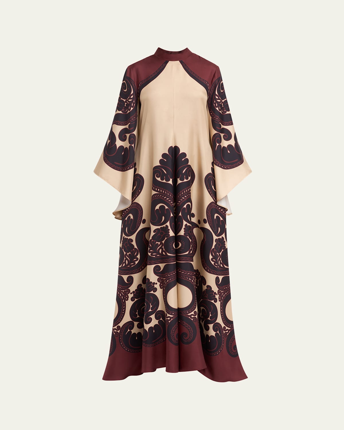 La DoubleJ "Magnifico" twill placée dress Standup collar; back sash at neck Threequarter draped waterfall sleeves Loose silhouette Floor sweeping hem Slipover style Silk Dry clean Made in Italy