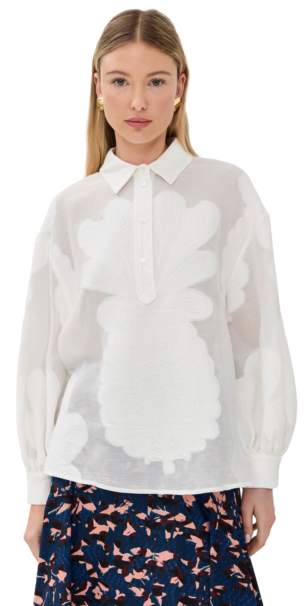 Cannot be shipped outside the USA Fabric: Lightweight, non-stretch jacquard. Button cuffs at sleeves. Collared neck. 3/4 sleeves. Partial button placket. Semi-sheer. Shell: 67% cotton/33% silk. Dry clean. Made in Italy. Measurements: Measurements from size S Length: 23.5in / 60.0cm, from shoulder
