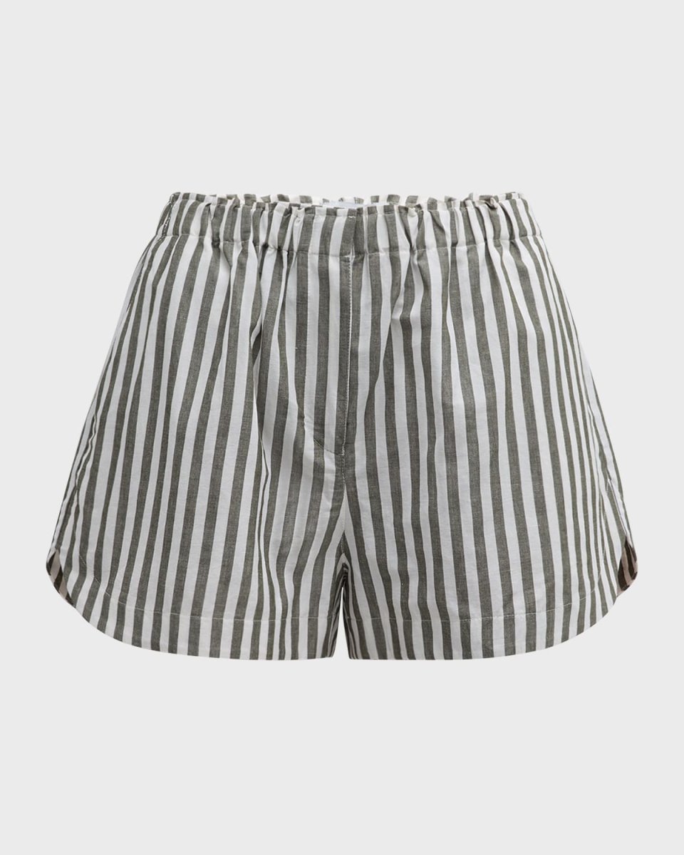 La Ligne striped shorts Highrise waistband Slanted side and back welt pockets Relaxed legs Pullon style Cotton/linen Lining: Cotton Made in Italy
