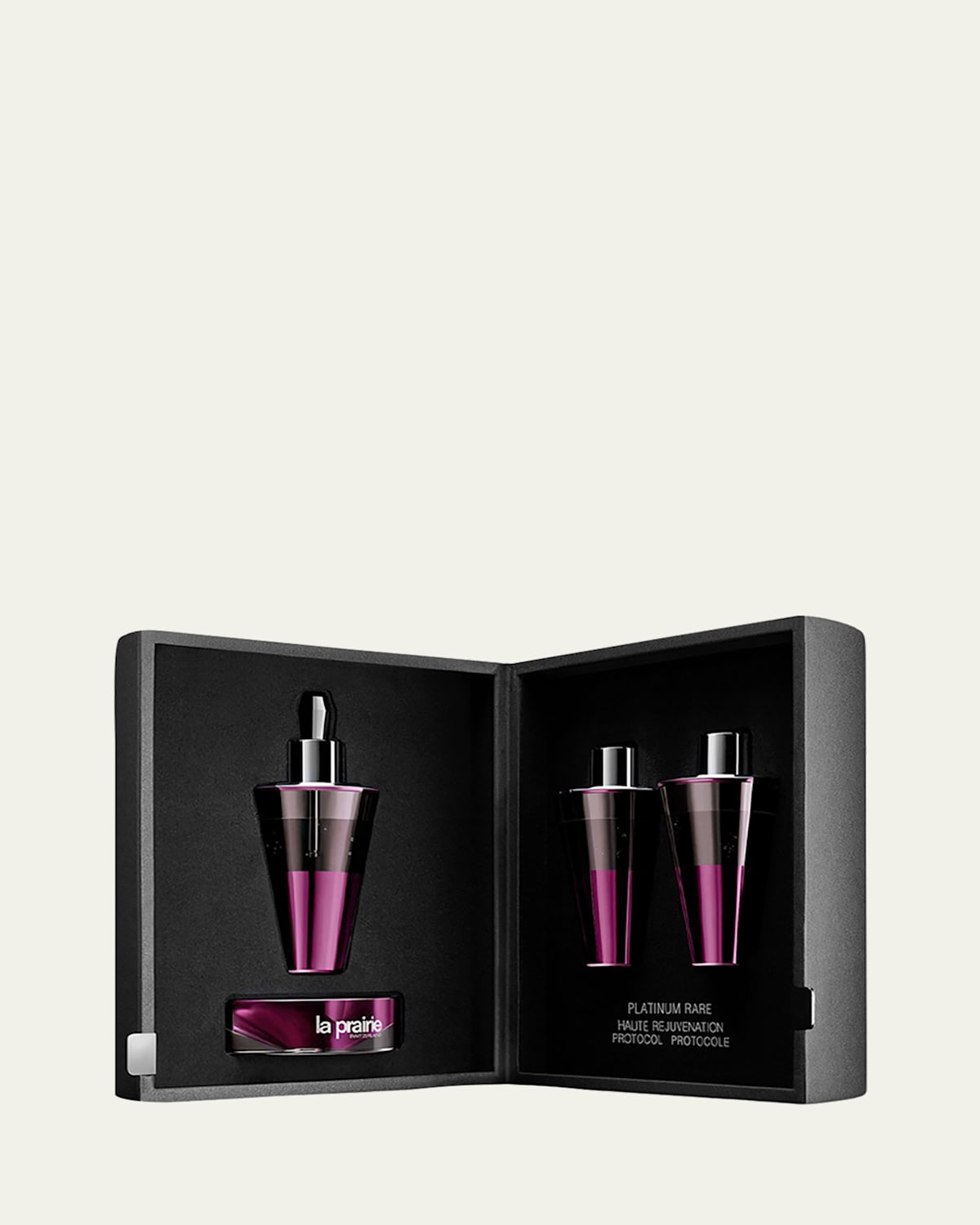 Intensive rejuvenating face treatment What It Is Inspired by its origins and based on 21stcentury skin biology, La Prairie created Platinum Rare HauteRejuvenation Protocol. A monthlong intensive treatment, it visibly rejuvenates the skin, helping compensate for the loss and degradation that comes with age. With Platinum Rare HauteRejuvenation Protocol, the science of HauteRejuvenation reaches its apex. Ignited by the beauty of platinum, the opalescent formula permeates the skin surface to begin